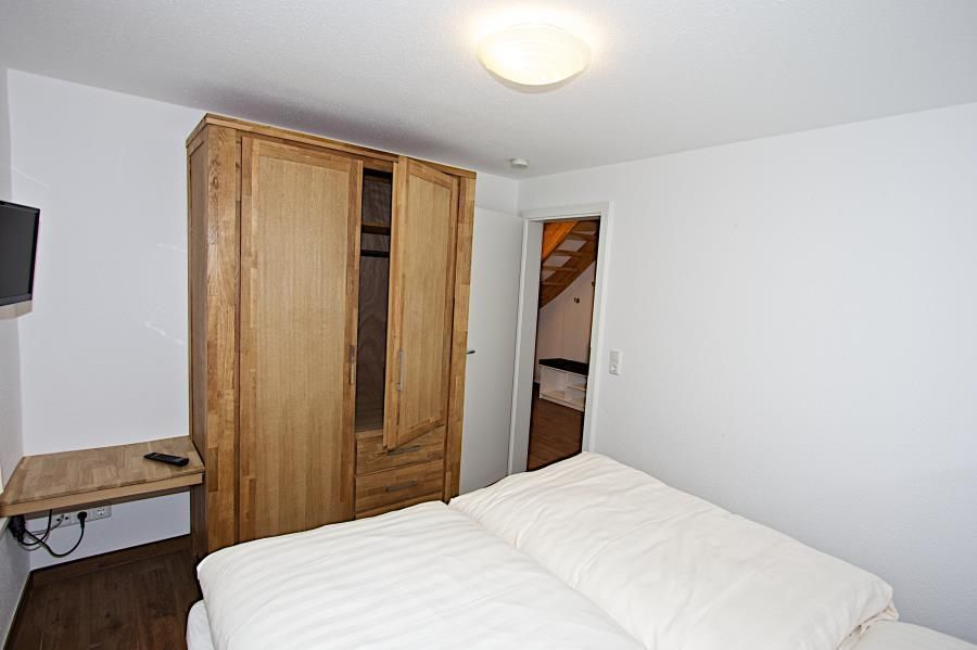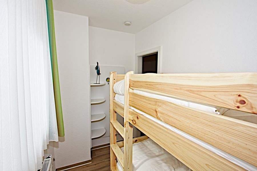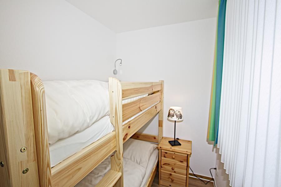 In den beiden separaten Schlafzimmern finden Sie insgesamt 4 Schlafgelegenheiten vor. Ein Schlafbereich mit einen Etagenbett, im Erdgeschoss für die Kids und ein Elternschlafzimmer mit Doppelbett im Untergeschoss. Ablagemöglichkeiten finden Sie in beiden Schlafbereichen vor. Auch befindet sich im unteren Flur zusätzlicher Platz für Schuhe und Garderobe. Viel Komfort auf kleinem Raum. Vom Untergeschoss aus können Sie auch gut in den Tag starten, da sich hier ebenso wie im Erdgeschoss eine gesicherte Wohnungseingangstür befindet.