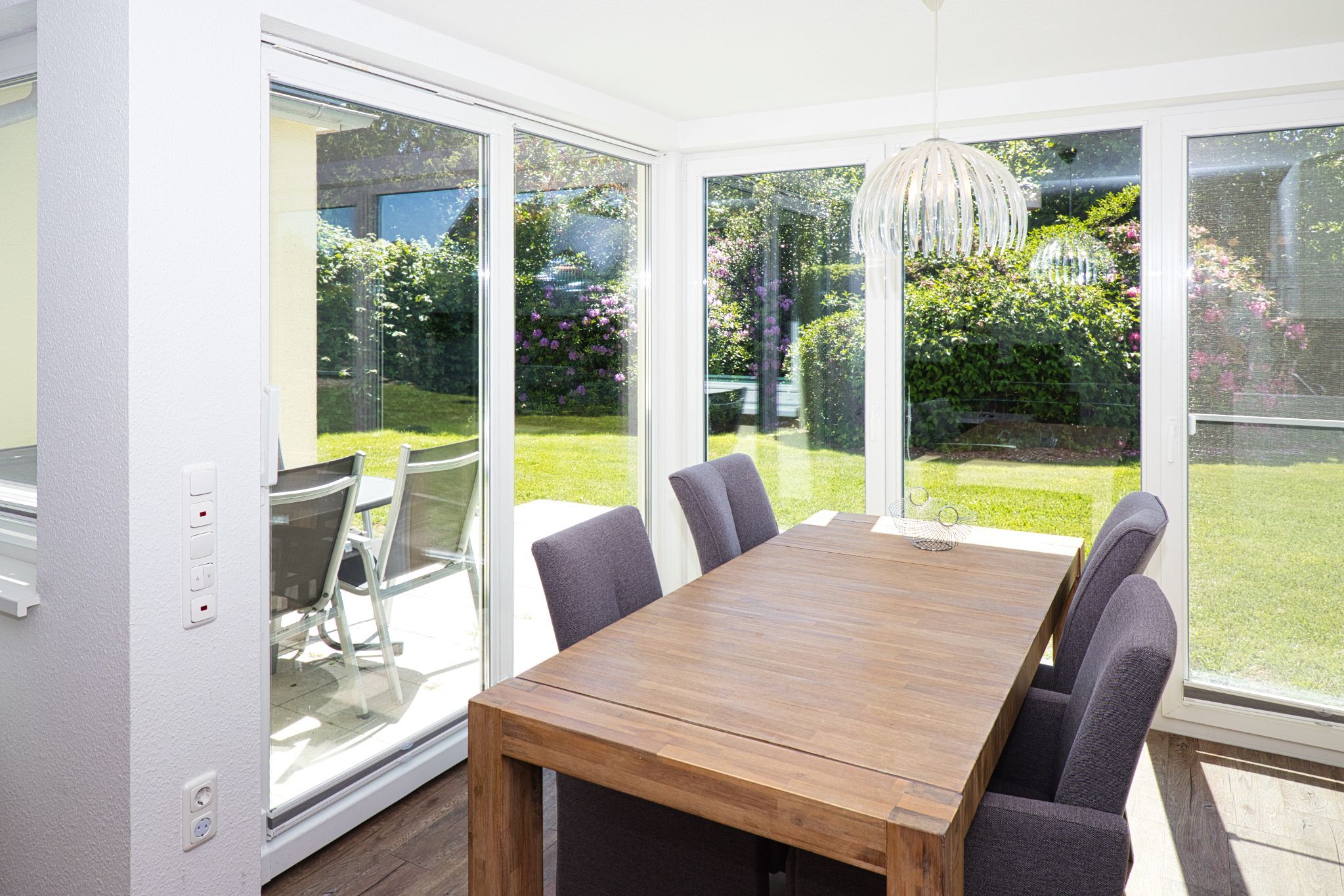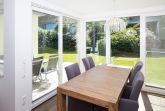 Diese geschmackvolle, moderne und barrierefreie Erdgeschoss-Ferienwohnung verspricht einen unvergesslichen Aufenthalt. Genießen Sie sonnige Stunden auf der Süd-Terrasse mit einem herrlichen Gartenanteil. Der großzügige Wohn-/ Ess- und Küchenbereich ist optimal gestaltet und bietet Platz für bis zu 4 Personen. Eine großflächige Glasfront am Essplatz schafft eine einladende Wintergartenatmosphäre. Für die dritte und vierte Person steht eine komfortable Schlafcouch zur Verfügung.