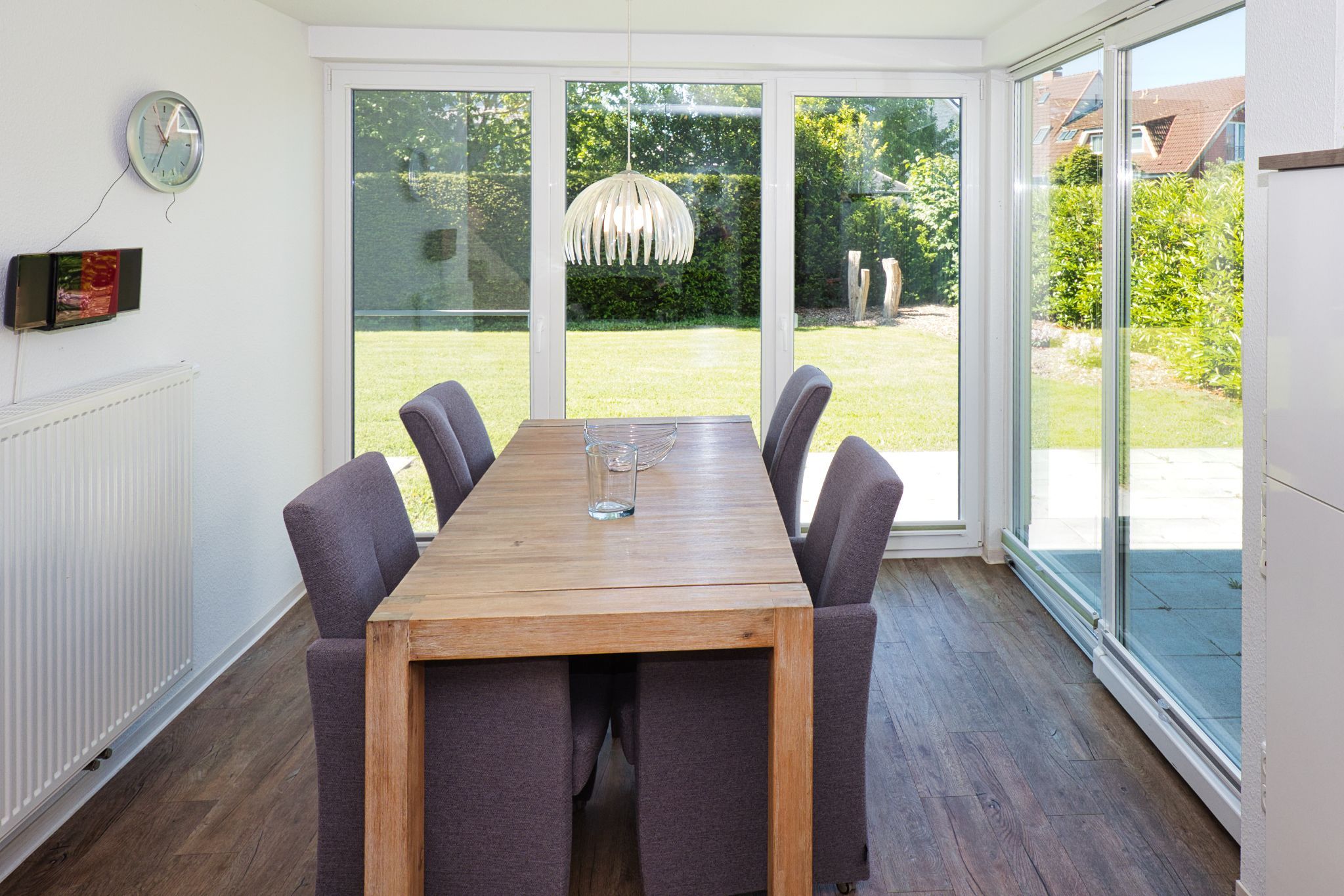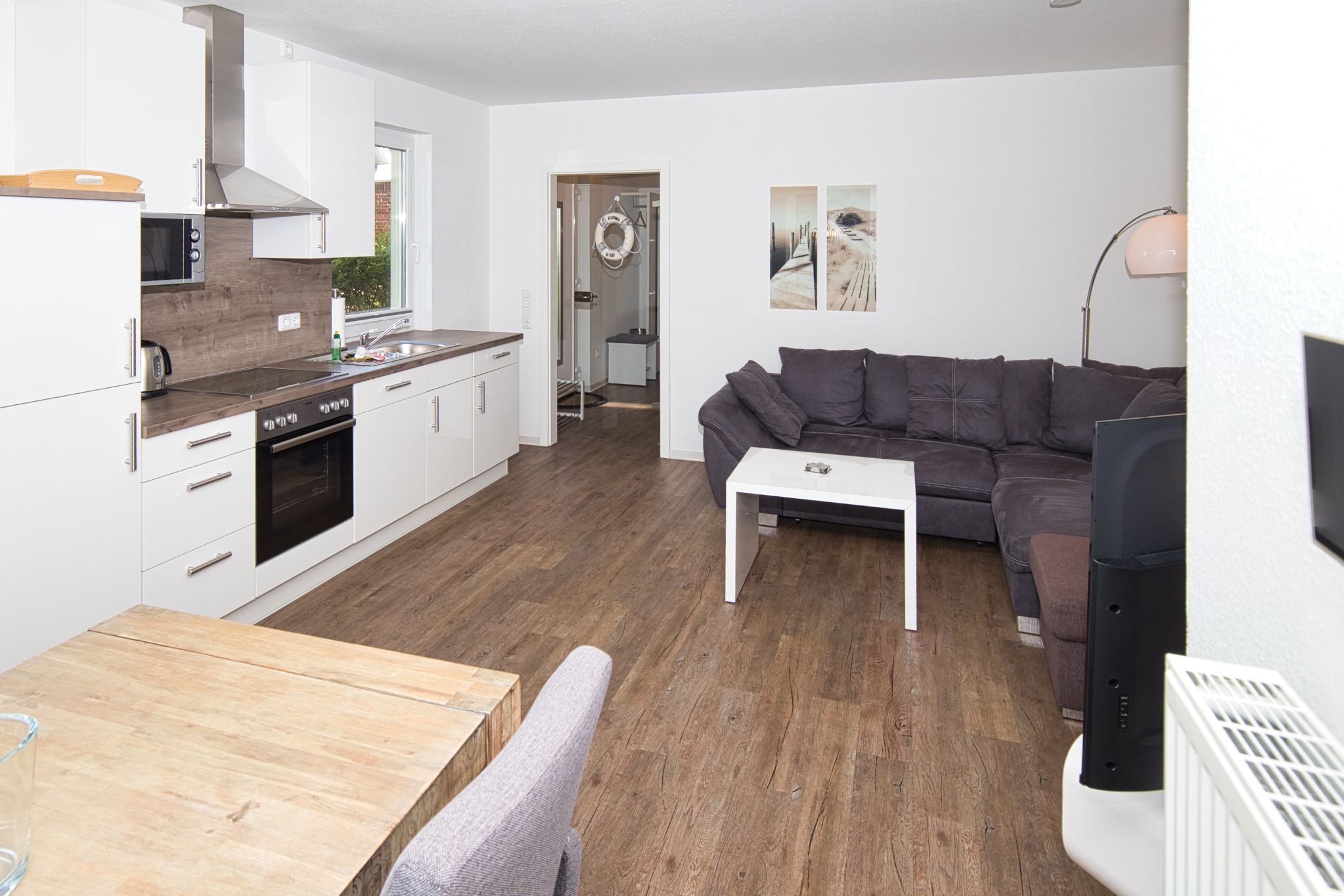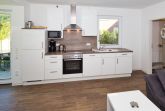 2 Zimmer Ferienwohnung am Grooten Steen 14 in Cuxhaven-Duhnen. Es erwartet Sie hier eine geschmackvolle, moderne und barrierefreie 2-Raum Ferienwohnung im Erdgeschoss mit Süd-Terrasse und Gartenanteil. Auf die Terrasse gelangen sie über den Wohn-/ Ess- und Küchenbereich. Dieser ist großzügig aufgeteilt und bietet Platz für bis zu 4 Personen. Eine große Glasfront am Essplatz zum Garten hin bietet Wintergartenatmosphäre. Die 3. und 4. Person finden Platz auf der Schlafcouch. Die Küche ist komplett ausgestattet. Das ebenfalls geräumige Schlafzimmer ist mit einem komfortablen Boxspring Doppelbett und genügend Stauraum ausgestattet. Ein Wasch- und Trockenraum mit Waschmaschine und Trockner steht Ihnen ebenfalls zur Verfügung.