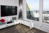 Das Appartement ist hochwertig, mit einem Designfußboden eingerichtet und verfügt über einen sehr geräumigen Kleiderschrank. Ihrer Sicherheit dient ein festinstallierter elektronischer Safe. Der Wohnung ist ein fester Parkplatz in der Tiefgarage (Höhe 2,10m) zugeordnet. Eine Wohnung mit gehobener Ausstattung in einem sehr komfortablen Haus direkt an der Strandpromenade und mit herrlichem Seeblick! Das Hausgeld in Höhe von EUR 1,80 pro Person und Nacht ist bereits bei einer Internetbuchung im Gesamtpreis für Sie berechnet!