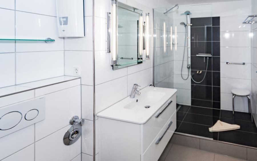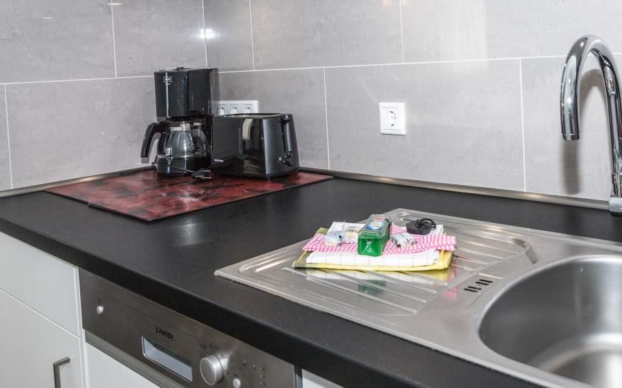 • Erstausstattung zum Start in den Urlaub - Bezogene Betten sowie ein Fewo-Starterpaket einschließlich Duschvorleger, ein Geschirrtuch, Geschirrspültabs, Spülmittel, Spülbürste, Spültuch, 1 Toilettenrolle, Müllbeutel etc.