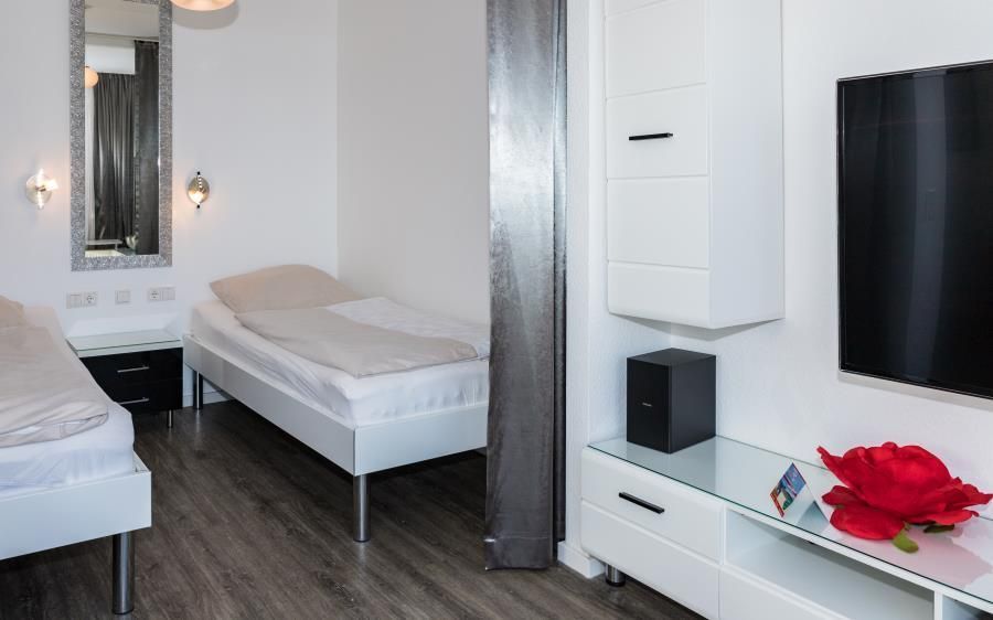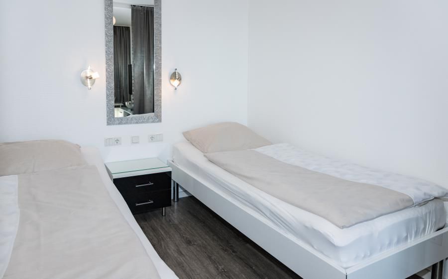 Das Appartement ist hochwertig, mit einem Designfußboden eingerichtet und verfügt über einen sehr geräumigen Kleiderschrank. Ihrer Sicherheit dient ein festinstallierter elektronischer Safe.  Der Wohnung ist ein fester Parkplatz in der Tiefgarage (Höhe 2,10m) zugeordnet. Eine Wohnung mit gehobener Ausstattung in einem sehr komfortablen Haus direkt an der Strandpromenade und mit herrlichem Seeblick! Das Hausgeld in Höhe von EUR 1,80 pro Person und Nacht ist bereits bei einer Internetbuchung im Gesamtpreis für Sie berechnet!