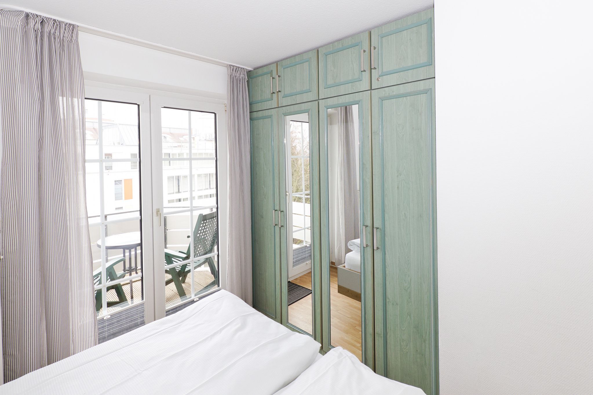 Das Schlafzimmer ist mit einem Doppelbett (bequeme Betthöhe: 55 cm) ausgestattet, um Ihnen erholsame Nächte zu garantieren. Handtücher, Kinderbett und Hochstuhl können auf Wunsch gegen eine kleine Gebühr bereitgestellt werden. Ein PKW-Stellplatz befindet sich direkt vor dem barrierefreien Weg zum Eingang. Der Zugang zum Haus und zum Aufzug ist ebenfalls barrierefrei. Der wohnungseigene Keller steht Ihnen zur Verfügung, um Koffer, Kinderwagen, kleine Kinderfahrräder, Fahrradanhänger o.ä. zu lagern.
