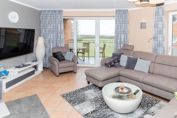 Hochwertig mit Seeblick - Strandpalais Duhnen Nige Og II / Haus 2 / Eingang C / FeWo C06, Wehrbergsweg 32c, 3-Raum, Hochparterre, ca. 90m², bis zu 5 Personen, Blick auf Neuwerk und die Nordsee. Diese sehr hochwertige und gemütliche Ferienwohnung Strandpalais SP206 in einmaliger Lage mit Blick auf den Weltschifffahrtsweg und die Insel Neuwerk bietet Ihnen einfach mehr. Vom Eingangsbereich mit Garderobe gelangen Sie in die beiden hochwertigen Schlafzimmer. Das geräumige Duschbad mit Badewanne und WC, sowie der Waschmaschine bietet auch am morgen Platz. Durch den Eingangsbereich kommen Sie in den großen und hellen Wohn- und Essbereich (Fußbodenheizung) mit großem Esstisch und verschiedene Sitzmöglichkeiten. Dieser Bereich lädt ein zum morgendlichen Frühstück und abendlichen Spielen mit Seesicht. Von hier kommen Sie auch auf Ihren Balkon mit Seesicht und Balkonmöbeln. Die separate Küche ist hochwertig eingerichtet und auch mit einer zusätzlichen Senseo Pad Maschine ausgestattet. Für eine 5. Person steht Ihnen als Zusatzschlafplatz das große Sofa mit Auszug und extra Topper zur Verfügung.