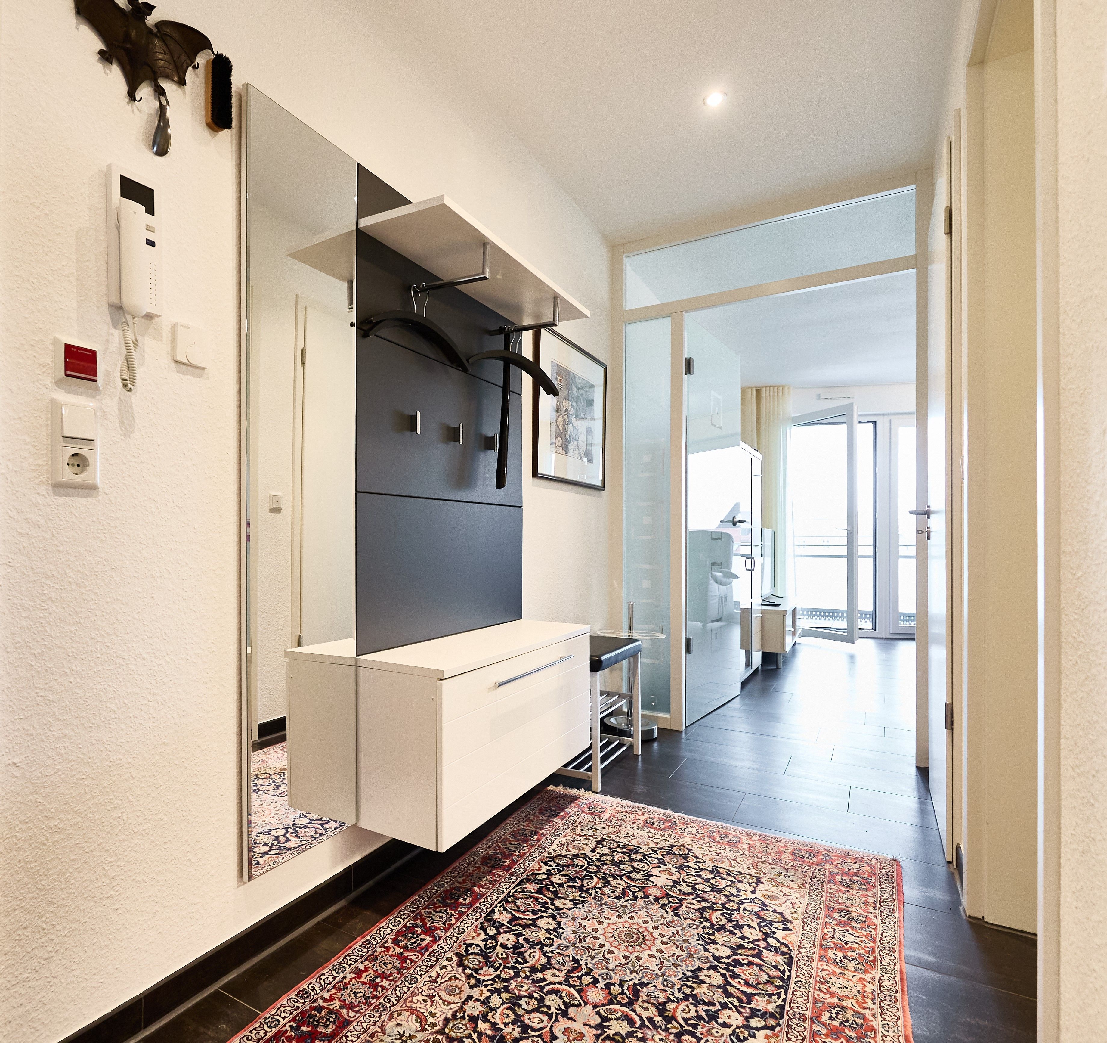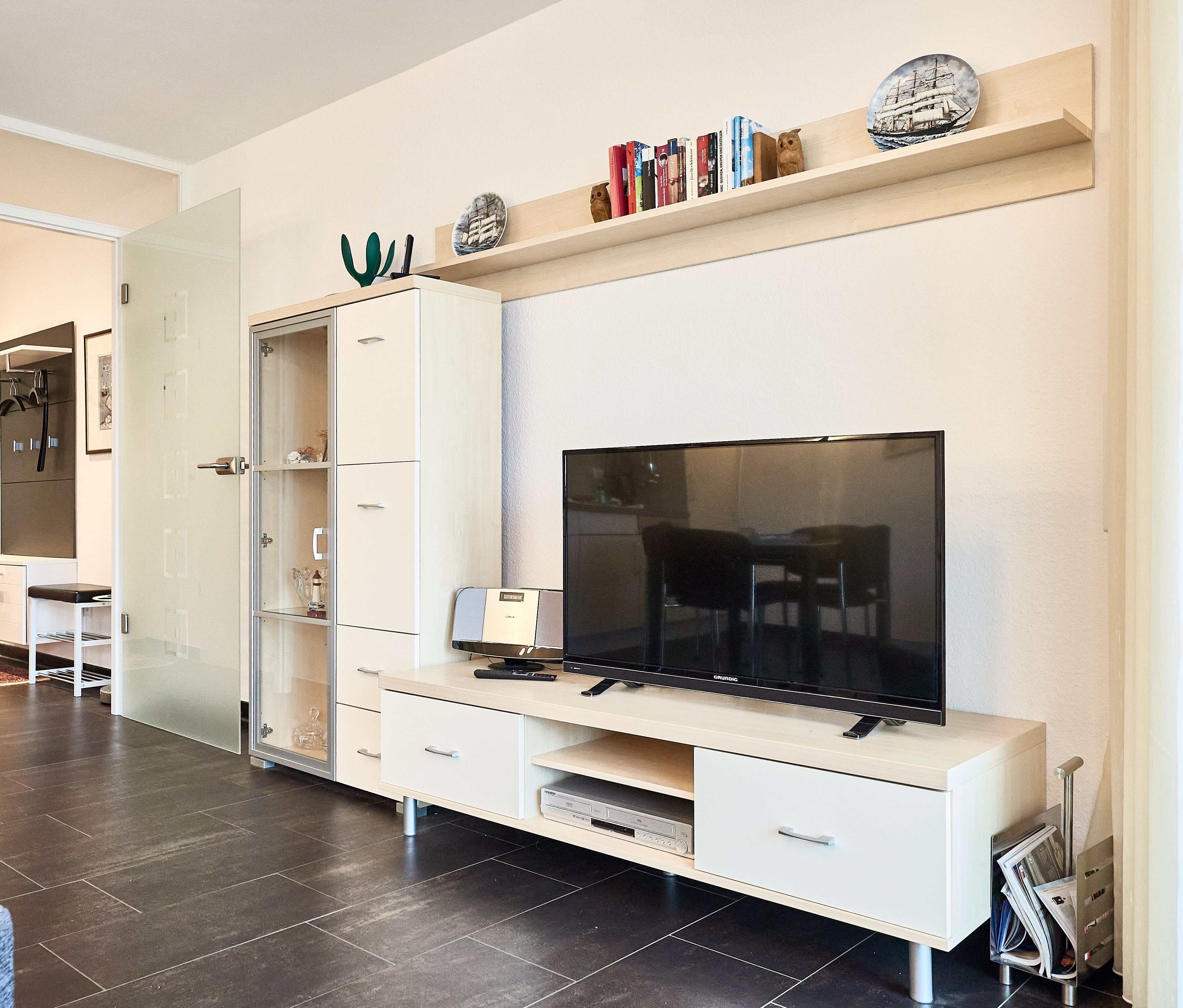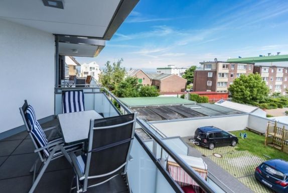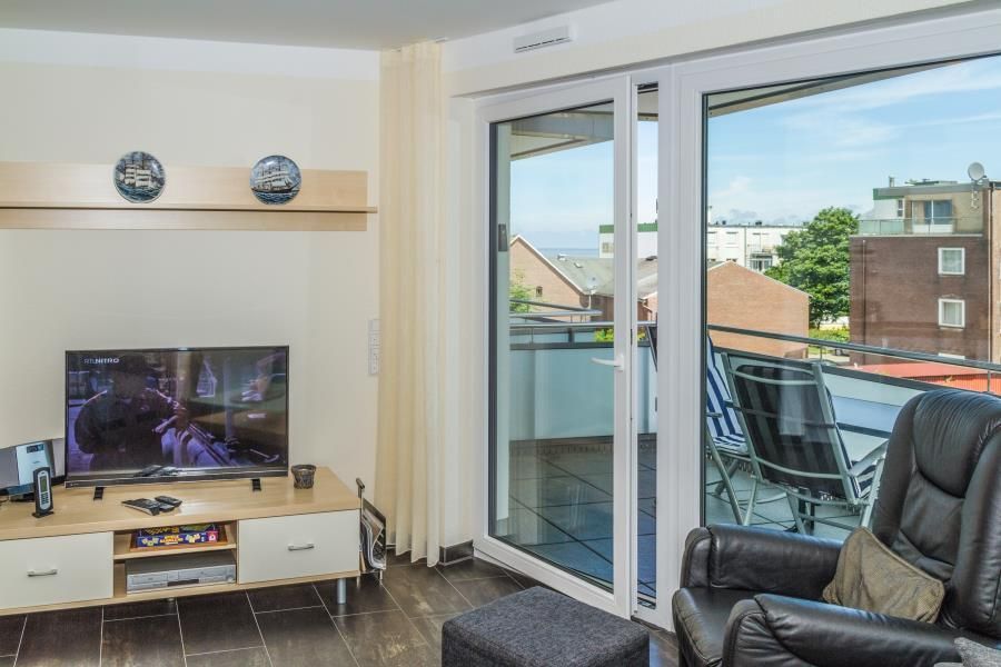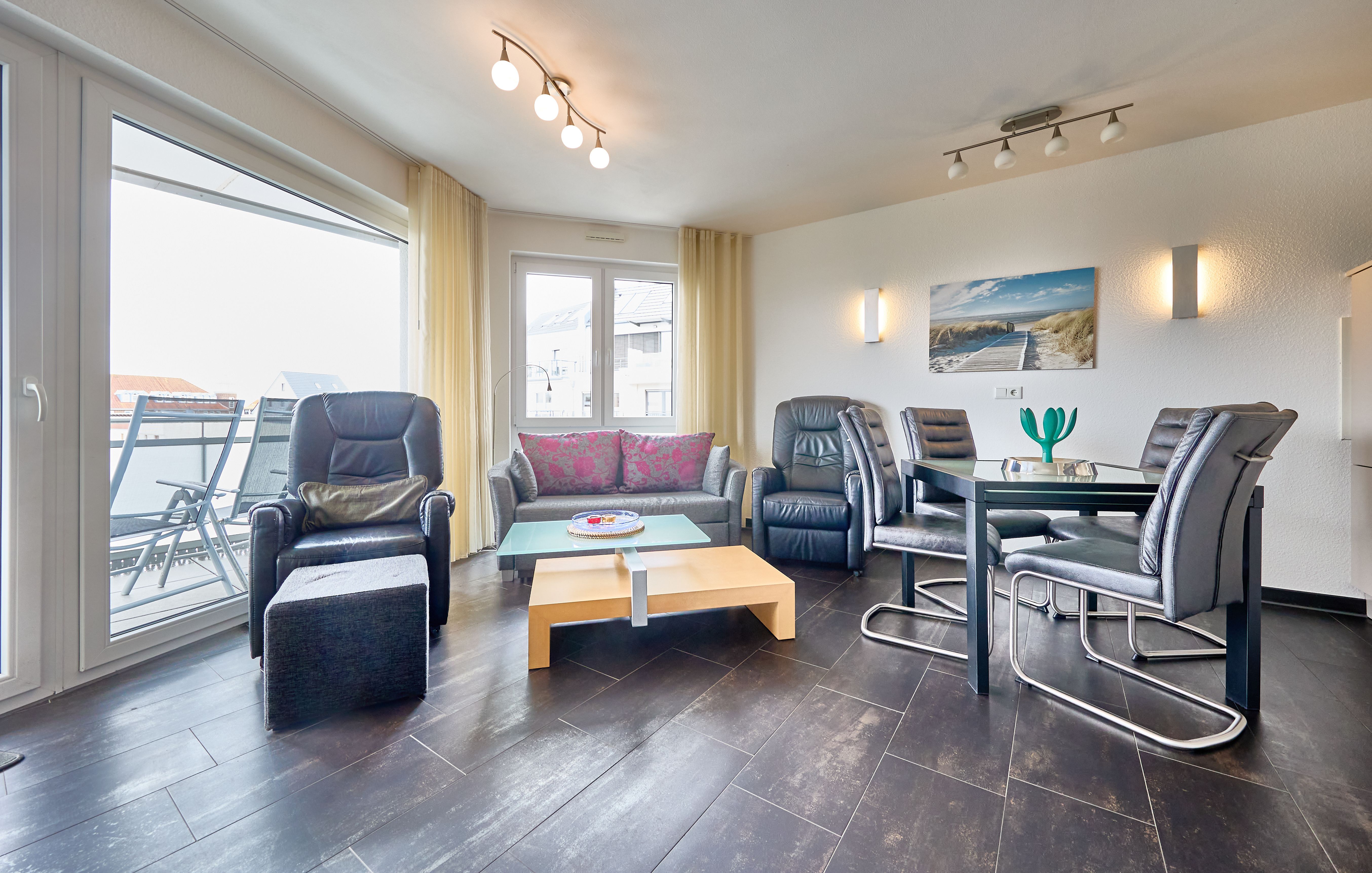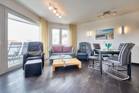 Die Wohnung präsentiert sich modern und komfortabel gestaltet. Der helle Wohn- und Essbereich lädt zum Verweilen ein, die gut ausgestattete Küche ermöglicht Ihnen die Zubereitung köstlicher Mahlzeiten. Der Balkon, vom Wohnbereich aus begehbar ist mit teilweisem Blick auf den Pferdehof der Wattenpost und die Nordsee (Teil-Seesicht von Oktober bis Mai, wenn die Bäume nicht zu üppig belaubt sind), ist überdachte und lädt zum entspannten Frühstück an der frischen Nordseeluft ein. Das Duschbad mit WC ist modern und funktional gestaltet. Im Schlafzimmer erwartet Sie ein komfortables Boxspringbett, sowie ein großer Kleiderschrank. Ein angrenzender Ruhebereich verfügt über ein einfaches Schlafsofa und raumhohe Fenster mit Blick Richtung Westen, so können Sie hier auch als kleine Familie urlauben und z.B. mit 3 Personen die Wohnung bewohnen.