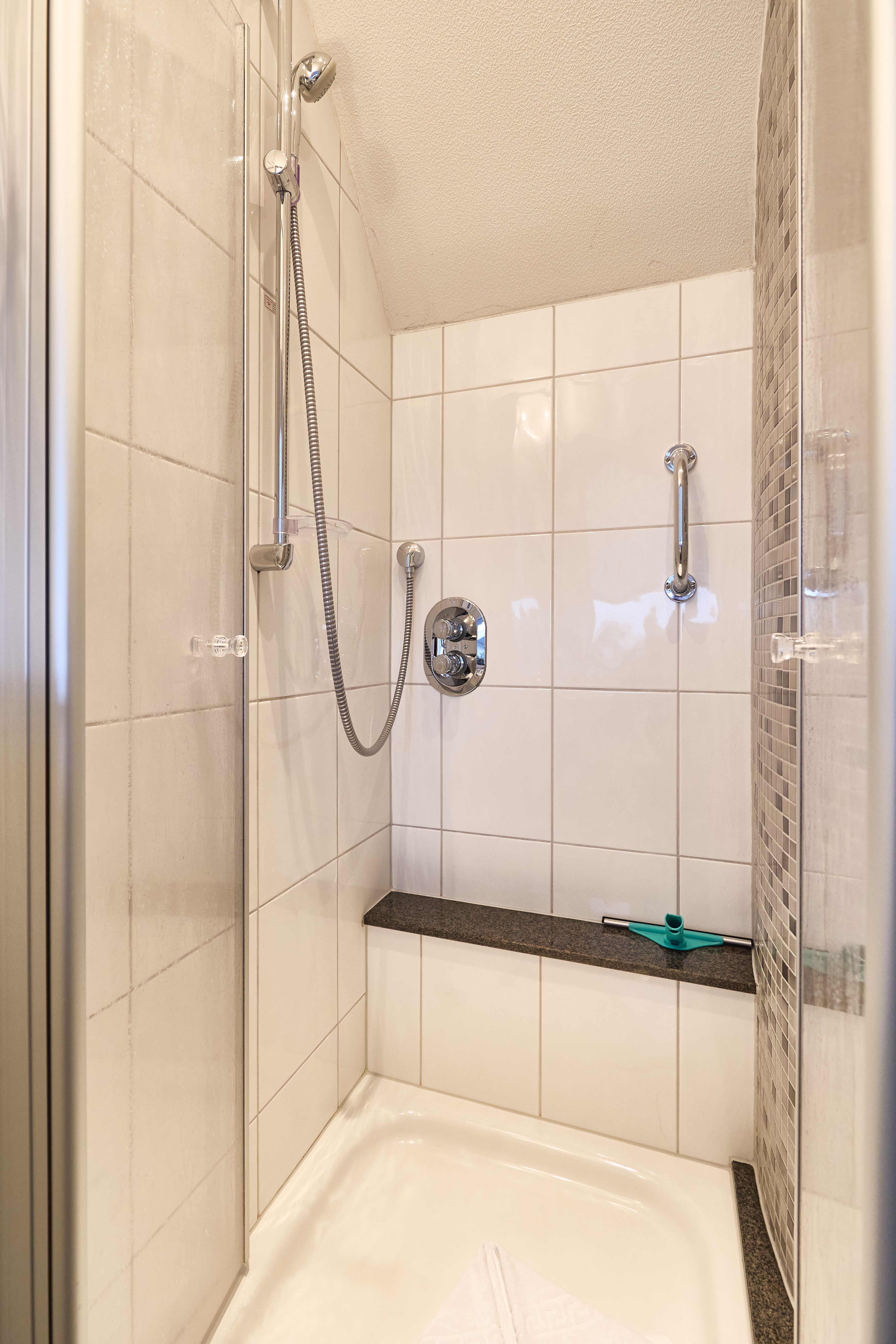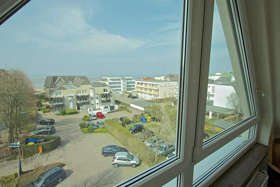 Duhner Leuchtturm, Whg. 6, 3-Raum Ferienwohnung über 2 Etagen, ca. 60m², 3.OG (mit Fahrstuhl) und DG, mit Balkon, bis zu 3 Personen. Eine Puppenstube erwartet Sie hier. Ein stillvoller Auftritt in einem besonderen Ambiente. Vom Balkon haben Sie eine kleine Seesicht durch die Dächer von Duhnen. Aus dem 2. Schlafbereich (im DG) können Sie aus dem Fenster über die Dächer von Duhnen und zur Nordsee schauen. Die Wohnung ist mit einem gemütlichen Wohn, Ess- und Küchenbereich aufgeteilt. Dazu befindet sich auf der selben Etage ein Duschbad - WC mit Fenster und ein Schlafzimmer mit einem Doppelbett. Der Nord/West Balkon bietet Ihnen eine schöne Sicht. Vom Wohnbereich führt Sie eine Treppe ins Dachgeschoss mit einem weiteren Duschbad/WC und dem 2. Schlafzimmer, ebenfalls mit einem Doppelbett. Wir finden es ist eine tolle und gemütliche Wohnung in strandnaher Lage.