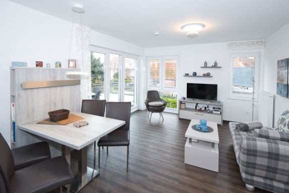 Der absolute Höhepunkt dieser Ferienwohnung ist der großartige Balkon mit einer nahezu kompletten Rundumsicht ins Grüne. Dank seiner windgeschützten Südostlage lädt er zum Verweilen und Entspannen ein. Stellen Sie sich vor, wie Sie Ihren Morgenkaffee auf dem Balkon genießen und den Tag mit der frischen Meeresbrise beginnen.