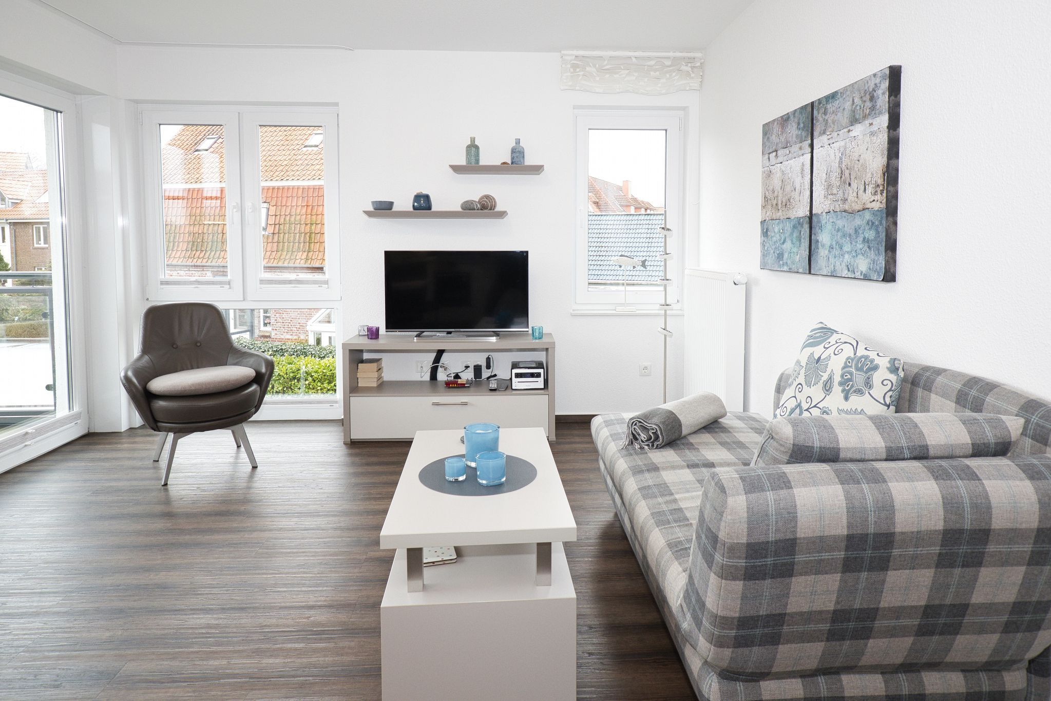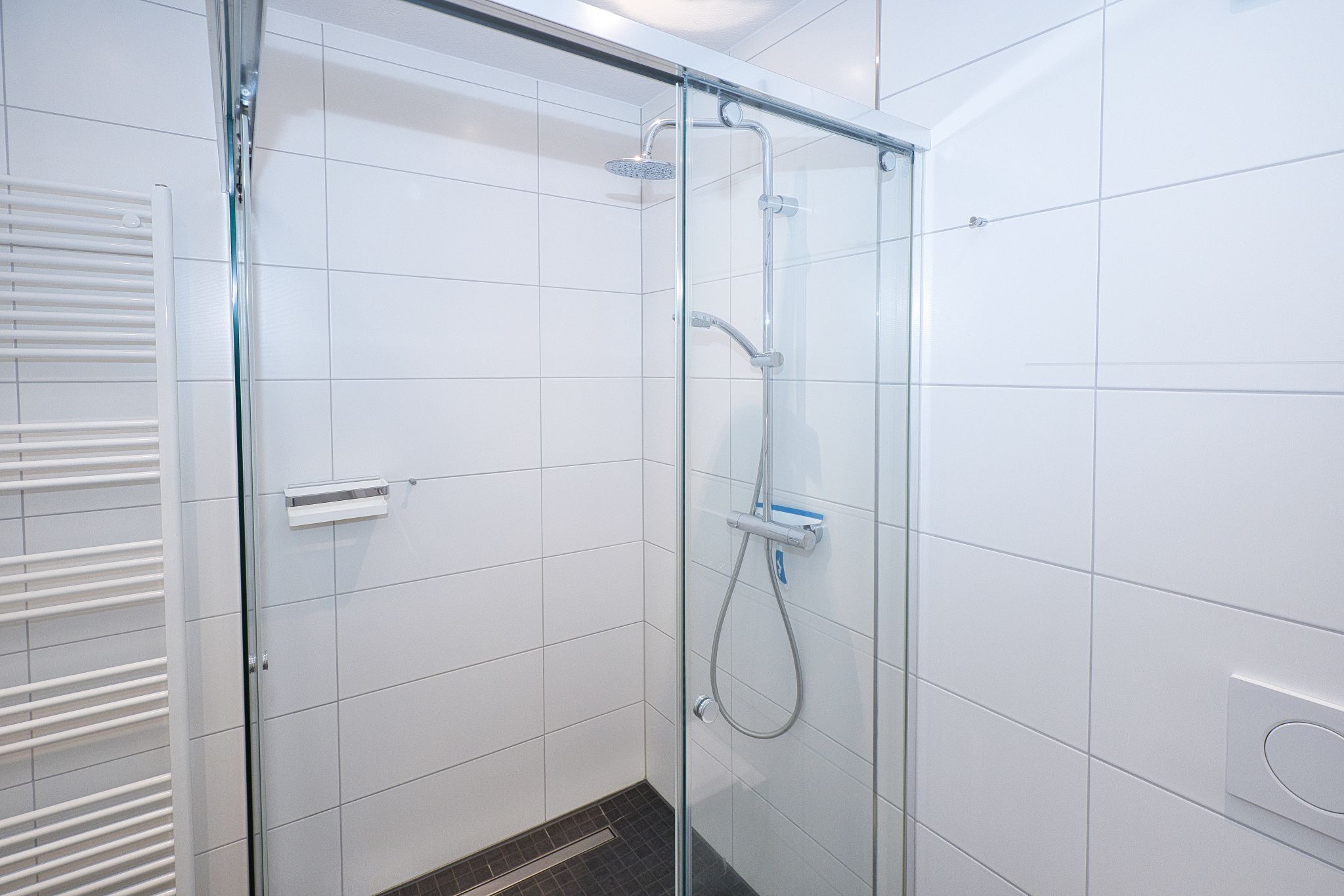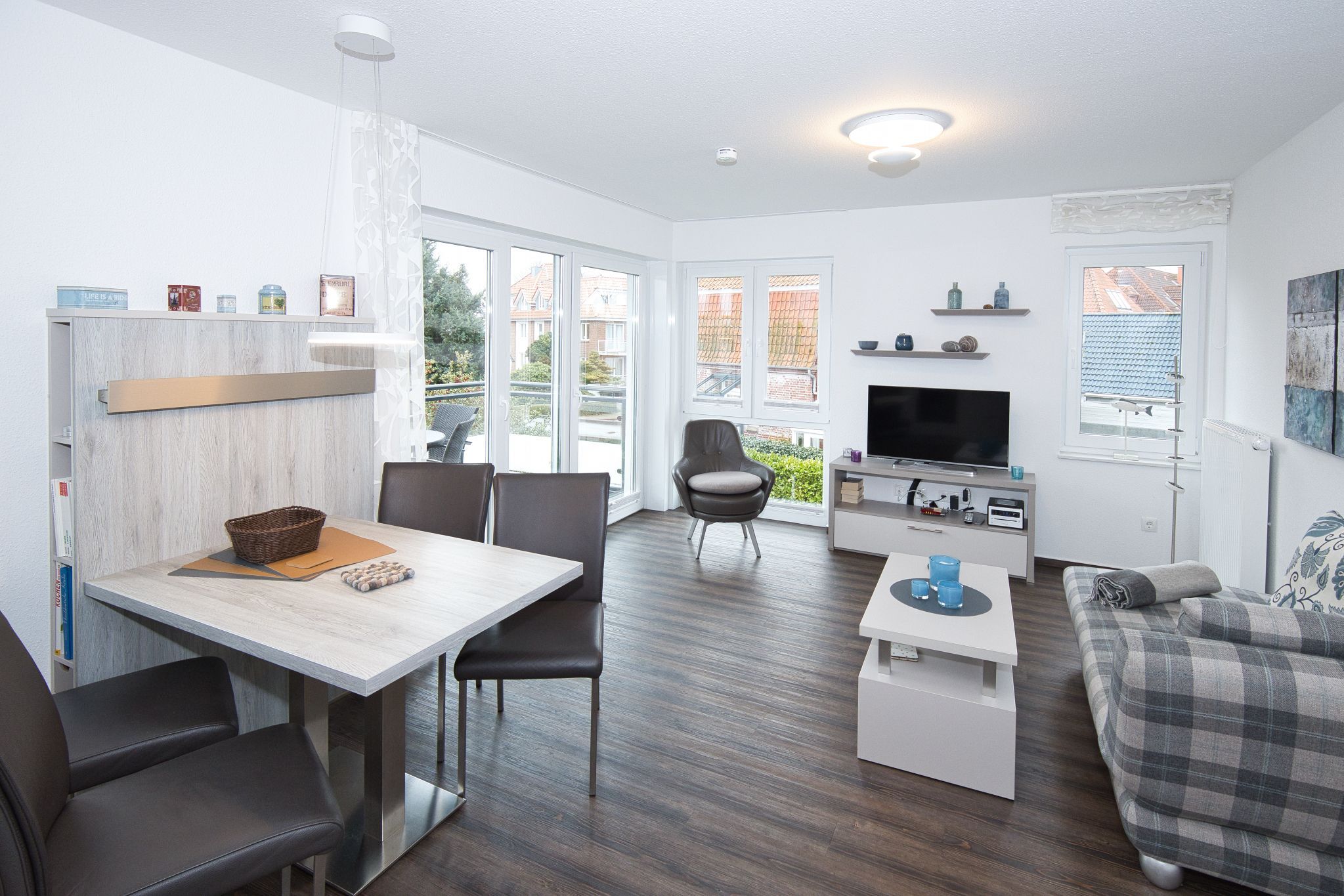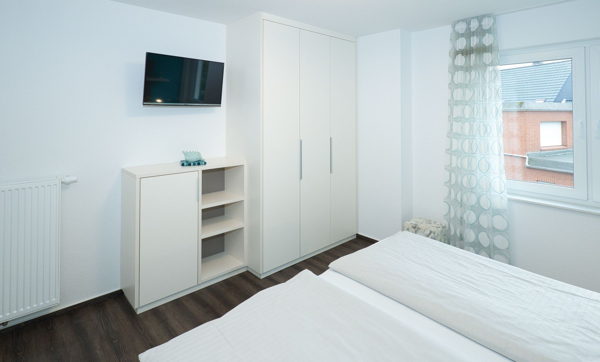 Die Wohnung bietet Ihnen auch eine schallgedämmte Eingangstür, eine tolle Garderobe und teilweise maßgefertigte Möbel, die das hochwertige Angebot abrunden. Das moderne Duschbad mit WC sorgt für weiteren Komfort während Ihres Aufenthalts.