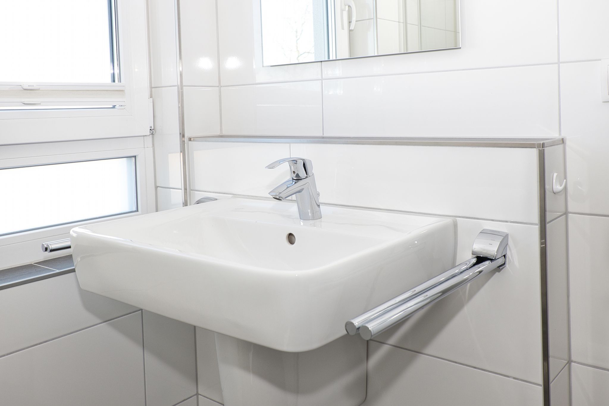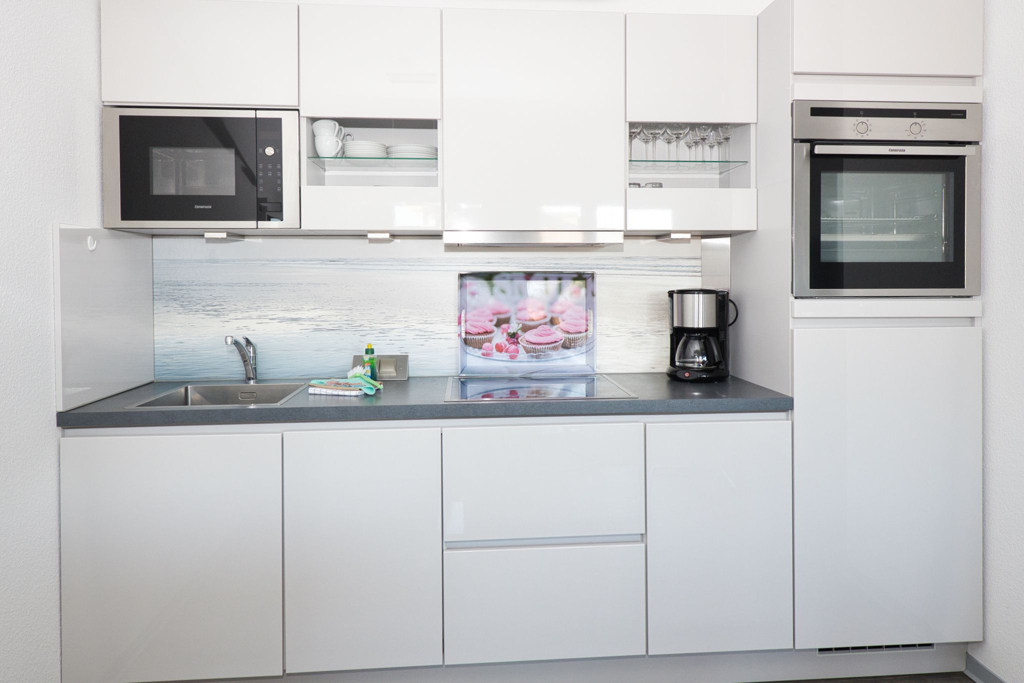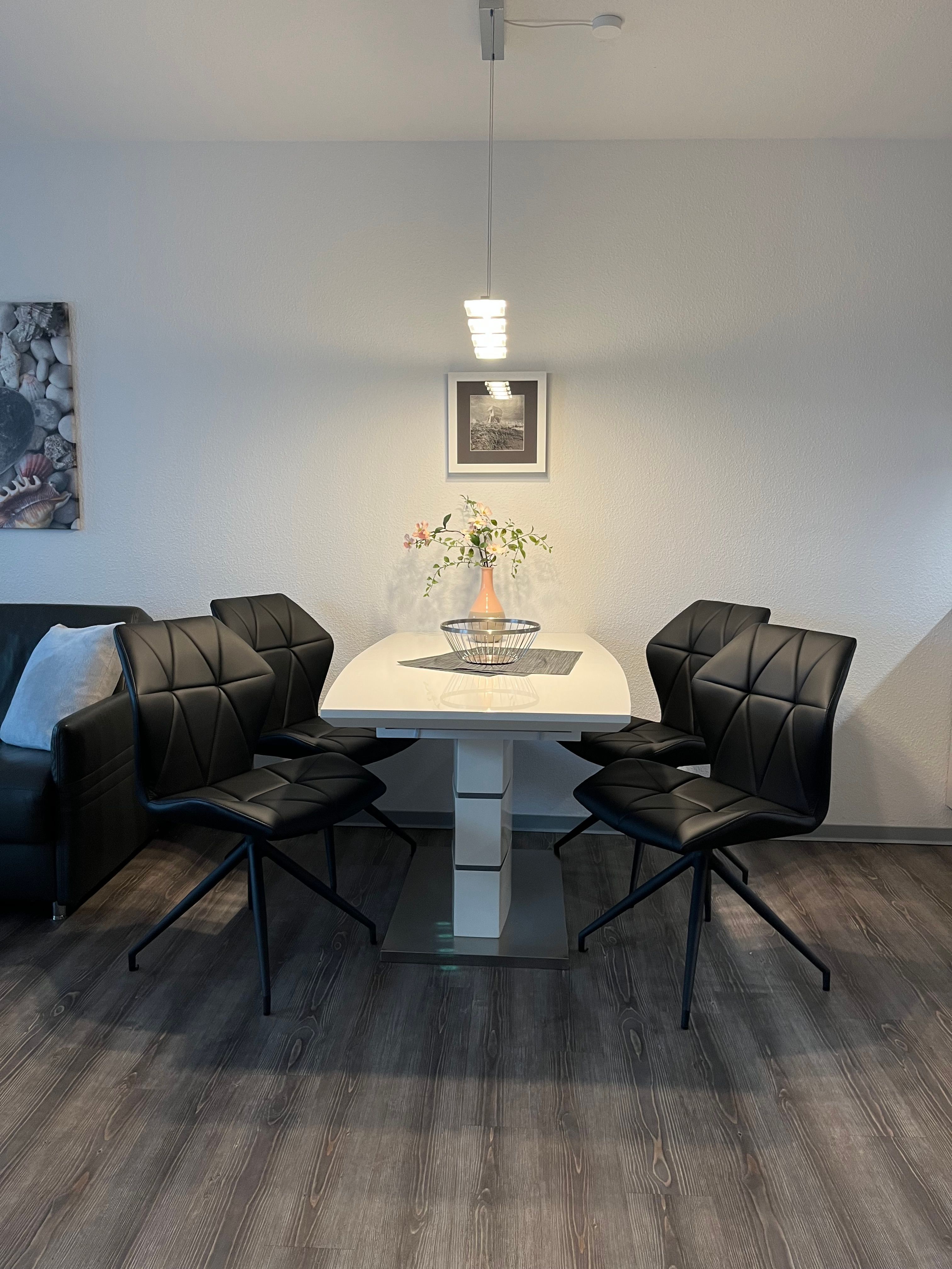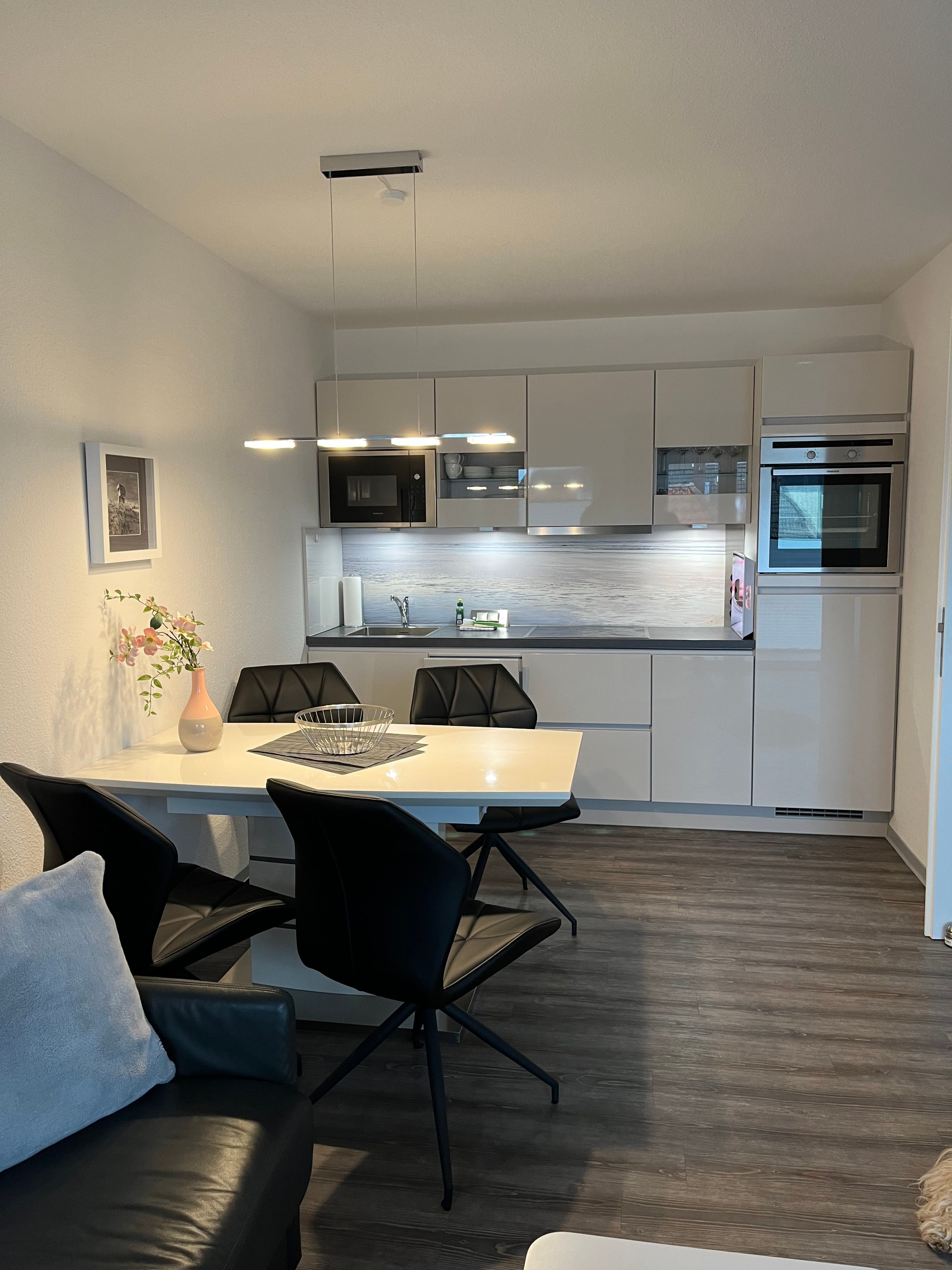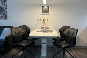 Die barrierefreie Wohnung zeichnet sich durch ihre komfortable Ausstattung und großzügig gestalteten Räume aus. Ein Fahrstuhl bringt Sie von der ebenerdigen Doppelgaragenhälfte mit direktem Zugang zum Treppenhaus bis ins Geschoss der Wohnung. Das Interieur ist modern und geschmackvoll gestaltet, um Ihnen einen angenehmen Aufenthalt zu ermöglichen.