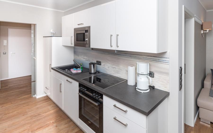 Bei der Gestaltung des Appartements wurden klassisch-moderne Materialien, Farben und Möbel schön aufeinander abgestimmt. Die moderne Küche mit Spülmaschine, Nespresso-Kapsel-Maschine, Cerankochfeld, Backofen und Mikrowelle bietet Ihnen die Möglichkeit, selbst zu kochen. Aufgrund der zentralen Lage befindet sich aber auch eine Vielzahl verschiedener, schöner Restaurants in unmittelbarer Nähe.
