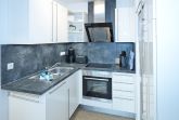 Mit einer Größe von 45m² bietet das 2-Zimmer Appartement ausreichend Platz für erholsame Ferien. Das komfortable Wohnzimmer lädt zum Verweilen ein und verfügt über einen offenen Küchenbereich. Die Küche ist mit modernen Annehmlichkeiten wie Geschirrspüler, Backofen, Ceran-Kochfeld, Mikrowelle, Kaffeemaschine und allen notwendigen Küchenutensilien ausgestattet. Hier können Sie sich problemlos selbst versorgen. Eine Essecke ist ebenfalls vorhanden. Für zusätzliche Schlafmöglichkeiten steht eine Schlafcouch für eine Person zur Verfügung.