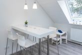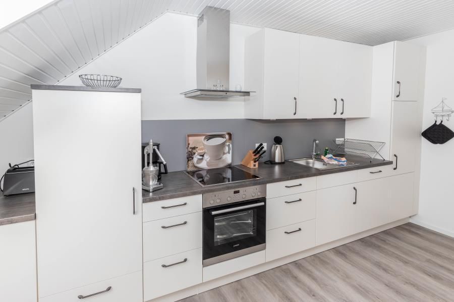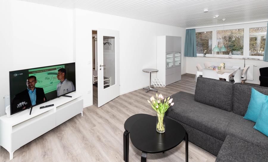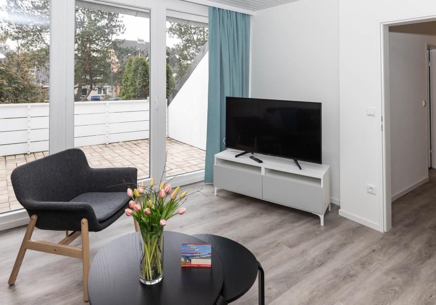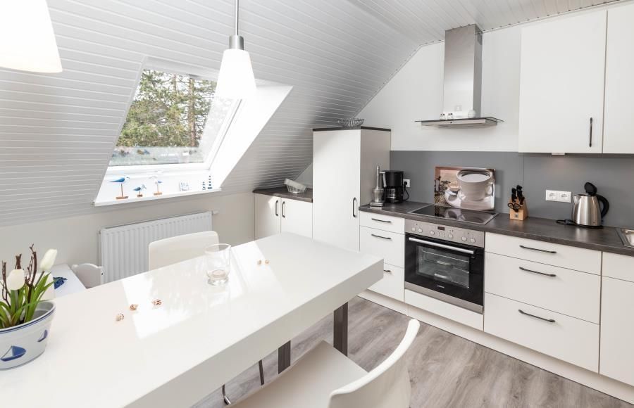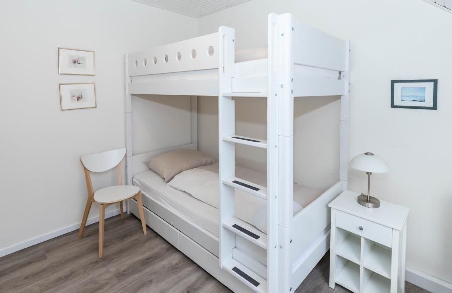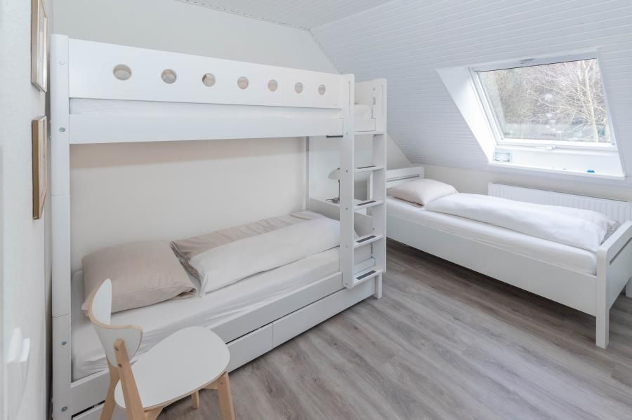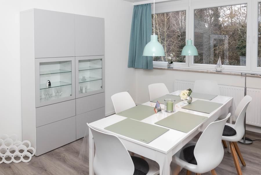 Erleben Sie hier Ihre Auszeit, genießen Sie in ruhiger, aber strandnaher, sowie zentrumsnaher Lage (nur 10 Minuten zu Fuß zum Strand - über die Duhner Allee) einen unvergesslichen Urlaub. Die Ferienwohnung - Auszeit - in Duhnen. Für die Kleinsten ist ein Spielplatz in wenigen Schritten erreichbar. Wenn die Kinder sich dann ausgetobt haben, bietet die Ferienwohnung eine wunderbare Balkonterrasse (Süd/West) für die Kaffeepause. Diese großzügige, in 2018 komplett erneuerte und absolut ruhig gelegene Ferienwohnung wird Sie begeistern. Hell, freundlich und modern eingerichtet. Mit einer separaten Küche mit einer Sitztheke. Hier macht das abendliche Kochvergnügen Spass. Die Kleinsten haben Ihr hier sogar Ihren eigenen Sitzplatz mit Tisch und 2 Stühlen. Toll. So können die Eltern sich in Ruhe auf das Essen machen konzentrieren. Die anderen Gäste verweilen inzwischen im lichtdurchfluteten Wohnbereich mit einer großen Couch und Sessel. Zum Essen steht Ihnen dann ein Esstisch mit 6 Sitzmöbeln zur Verfügung. Das Bad mit seiner großzügigen Dusche und Doppelwaschtisch mit Radio, Waschmaschine sowie WC ist modern gefliest und hat ein Fenster. Die beiden Schlafbereiche sind jeweils mit einem Einbaukleiderschrank, der sich dem Raum sehr gut einfügt, für die jeweilige Personenanzahl eingerichtet. In dem einen Schlafzimmer befindet sich ein Doppelbett und in dem anderen ein auch für Erwachsene geeignetes Etagenbett und ein komfortables Einzelbett. Für die 6. Person kann die Couch im Wohnbereich genutzt werden.