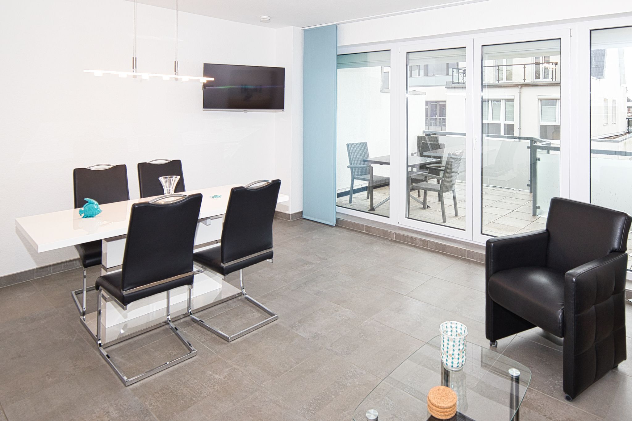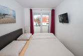 Auszeit in Duhnen kleine Urlaubswelt am Wattenmeer. Diese ca. 50 qm große Nichtraucher-Wohnung steht Ihnen für Ihre Erholung zur Verfügung in der kleinen Wohnanlage Ocean Dream 1 am Wehrbergsweg. Geschäfte und Restaurants befinden sich in unmittelbarer Nähe. Bis zum Strand und ins beliebte Ahoi-Bad gehen Sie zu Fuß keine fünf Minuten. Vom rückwärtigen und großzügigen Balkon der Zwei-Raum Wohnung aus genießen sie einen Teil-Meerblick. Auch vom 2. Balkon des Schlafzimmers aus können Sie die frische Duhner Meerluft schnuppern. Das Gebäude hat einen Aufzug. Die Wohnung Nr. 8 liegt in der zweiten Etage. Sie ist modern und in gehobenem Niveau eingerichtet. Die Räume bieten Platz für zwei bis maximal vier Personen. Das komfortable Boxspringbett im Schlafzimmer misst 1,80 x 2 Meter. Auf der hochwertigen Schlafcouch mit Lattenrost im Wohnbereich können zwei weitere Gäste bequem übernachten. Die Wohnung ist mit zwei TV-Geräten ausgestattet (Wohn/Essbereich und Schlafzimmer). Im Bad gibt es eine bodengleiche Dusche und eine Fußbodenheizung. Alle Räume sind mit elektrischen Rollläden ausgerüstet. In die Küchenzeile sind eine Geschirrspülmaschine und ein Backofen integriert. Toaster, Wasserkocher und Filterkaffeemaschine sind vorhanden. Die Gegensprechanlage für die Haustür ist mit Video ausgestattet. . Ein PKW-Stellplatz vor dem Gebäude gehört zur Wohnung. Aus Rücksicht auf Allergiker sind keine Haustiere gestattet.