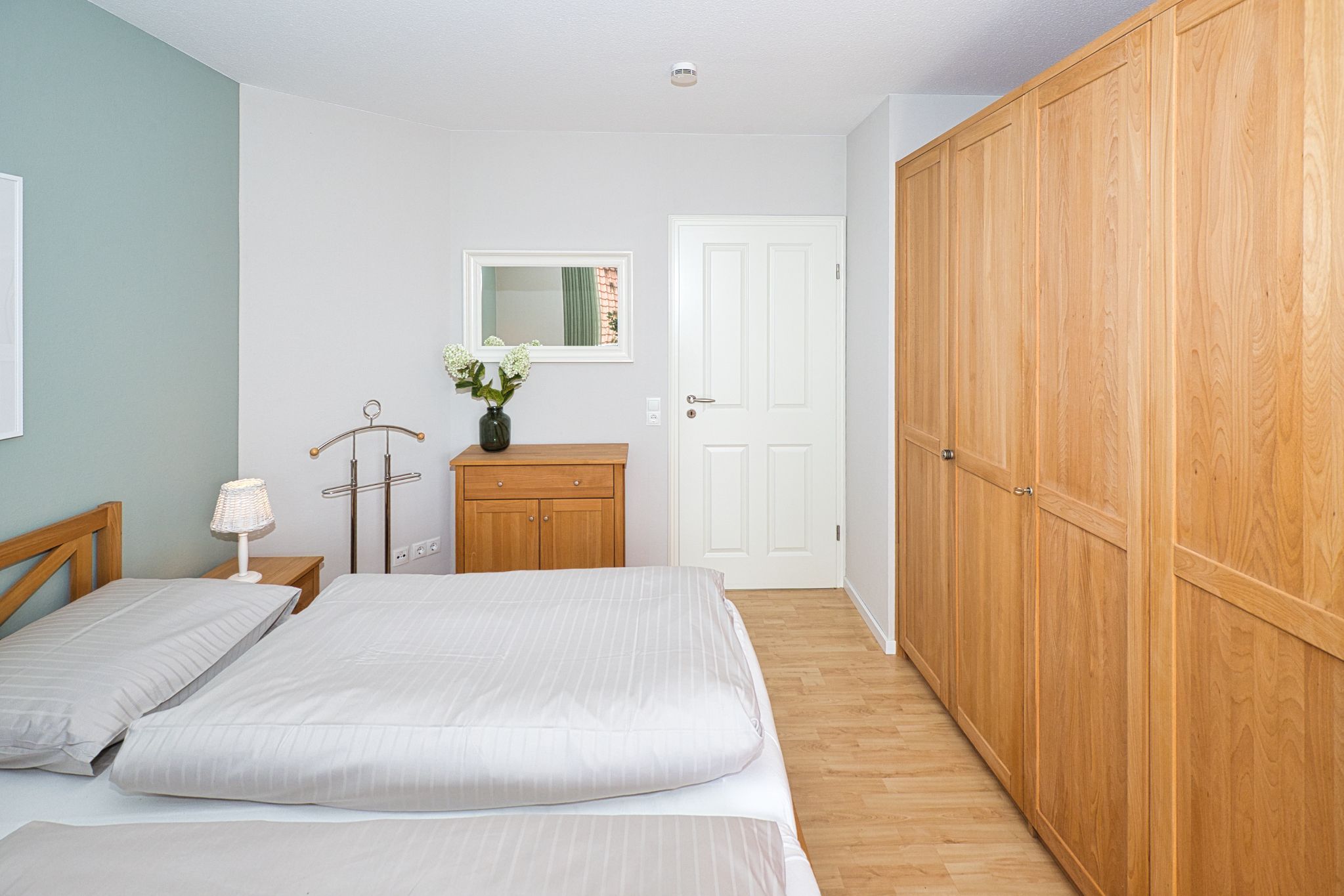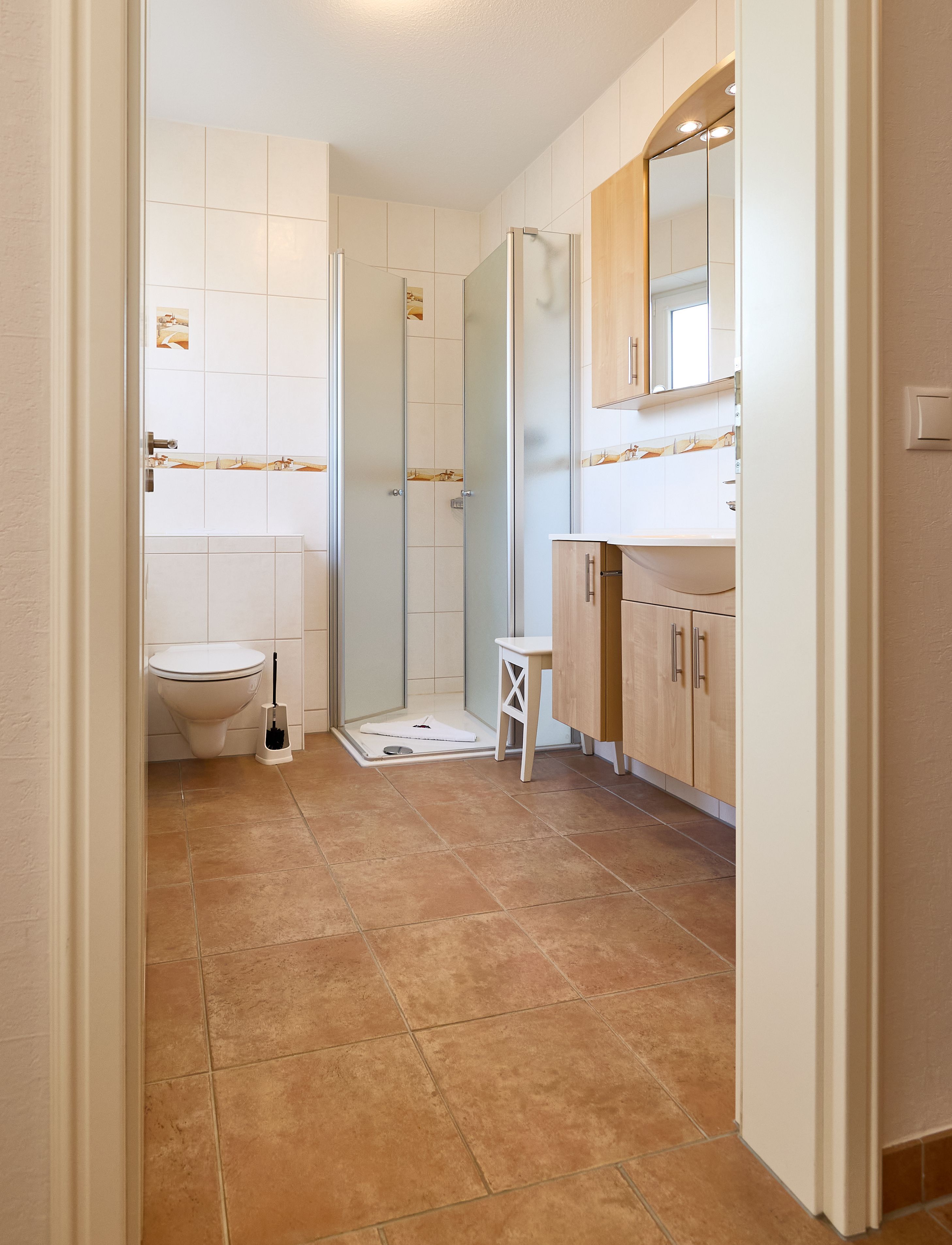 Die Wohnung verfügt über einen eleganten Eingangsbereich mit einer Garderobe, einem Schuhschrank und zusätzlichen Ablagemöglichkeiten. Von hier aus gelangen Sie in die beiden Schlafzimmer, die jeweils Zugang zum Süd-Ost Balkon haben. Eines der Schlafzimmer besitzt außerdem ein eigenes Duschbad mit WC. Ein weiteres Duschbad mit WC befindet sich ebenfalls in der Wohnung.