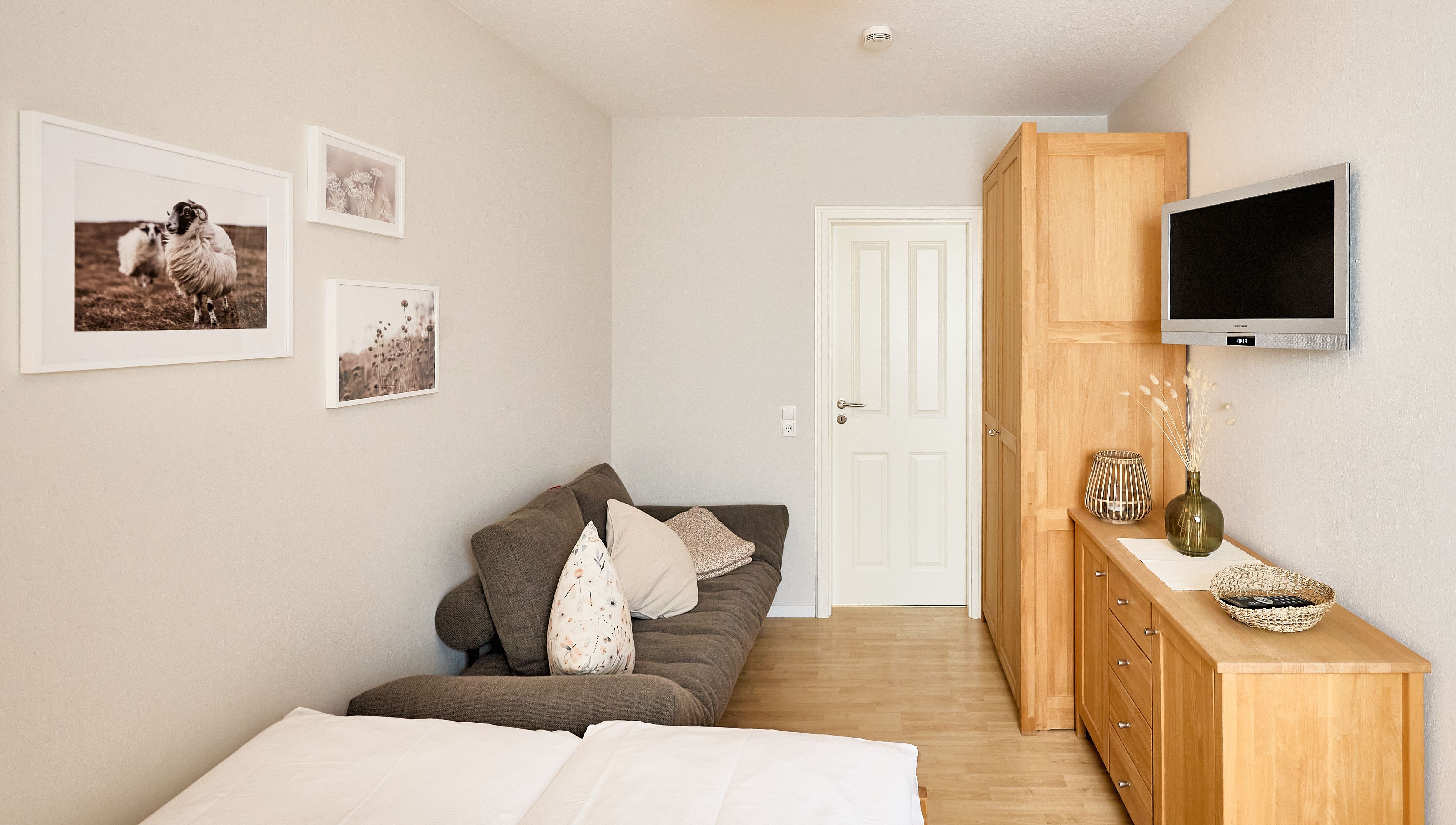 Genießen Sie Ihren Urlaub in dieser Ferienwohnung, die Ihnen einfach mehr bietet: einen erholsamen Blick auf Felder und Wiesen sowie eine traumhafte Aussicht auf die Nordsee und Neuwerk.