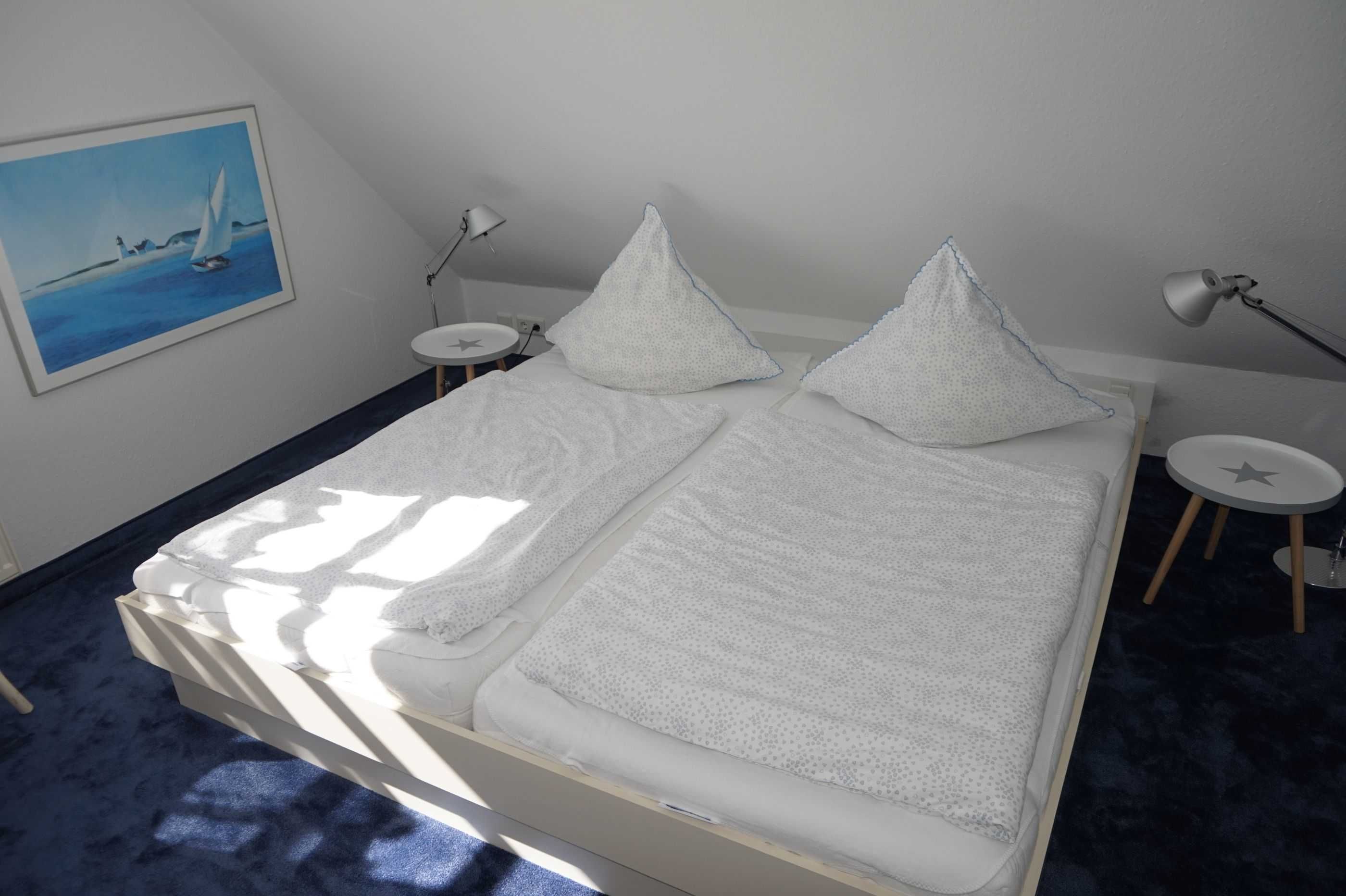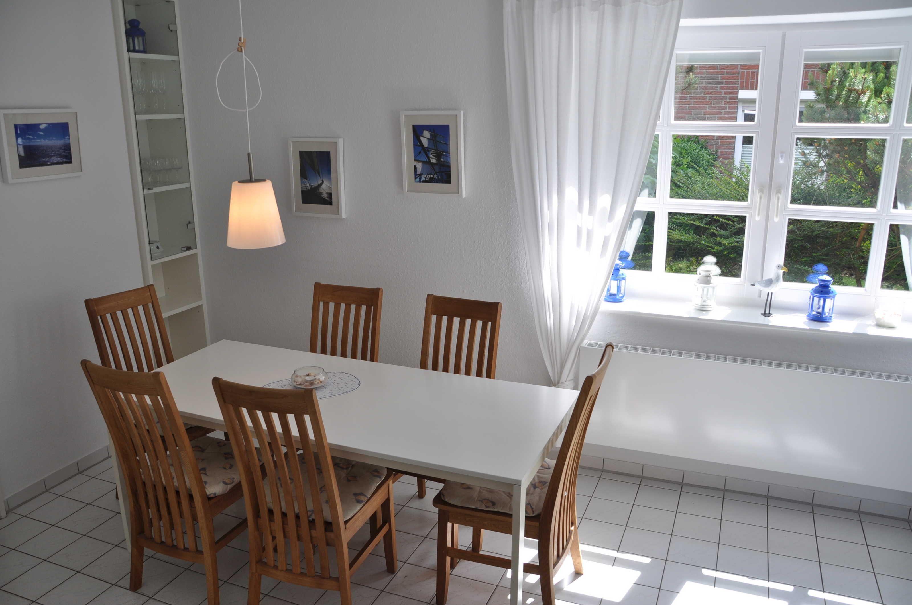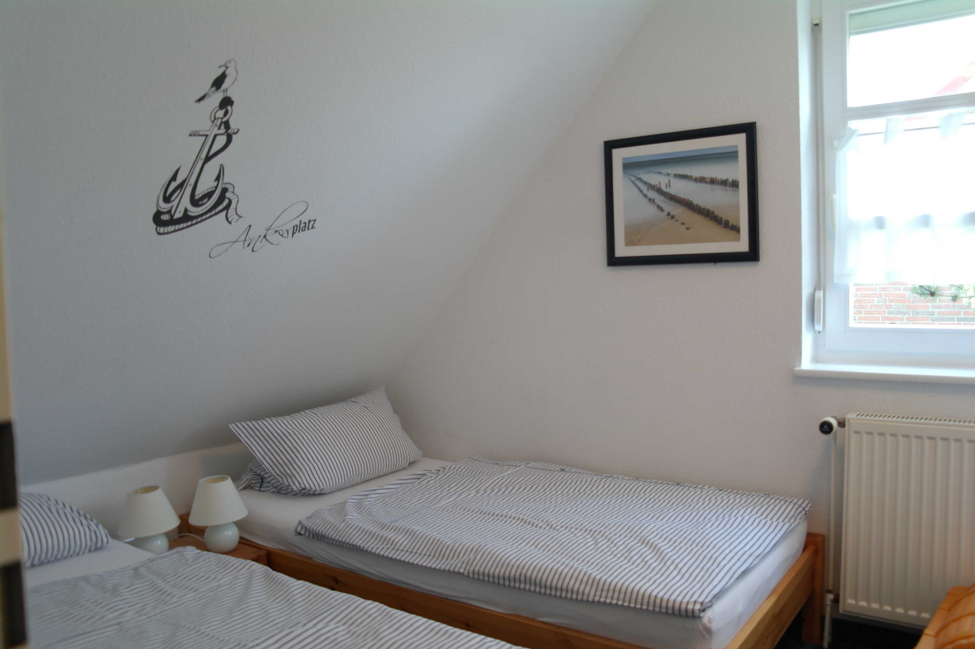 Helles, freundliches Wohnzimmer mit Sat-TV, separate Küche. Gäste-WC, Terrasse in Südlage, Garten, Gartenhaus für Fahrräder, Grillmöglichkeit. Im Obergeschoss 1 Schlafzimmer mit Doppelbett 2x2 m und Kinderbett, 1 Schlafzimmer mit 2 Einzelbetten 0,9 x 1,9 m, Bad mit Dusche/WC und Waschmaschine. Im Dachgeschoss ein Schlafzimmer mit 2 Einzelbetten 0,9 x 2,0 m. Ganzjährige Vermietung.