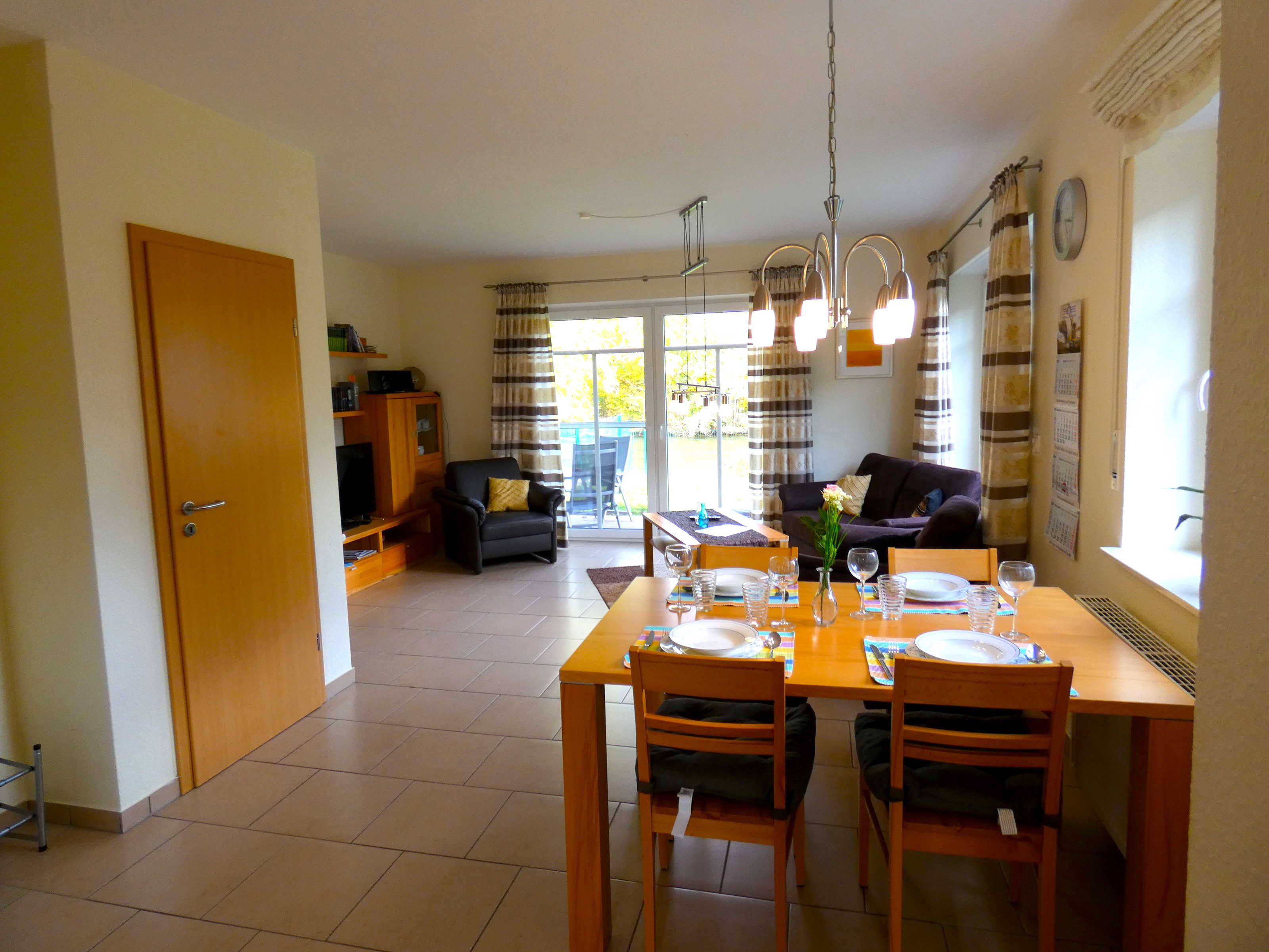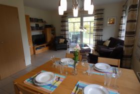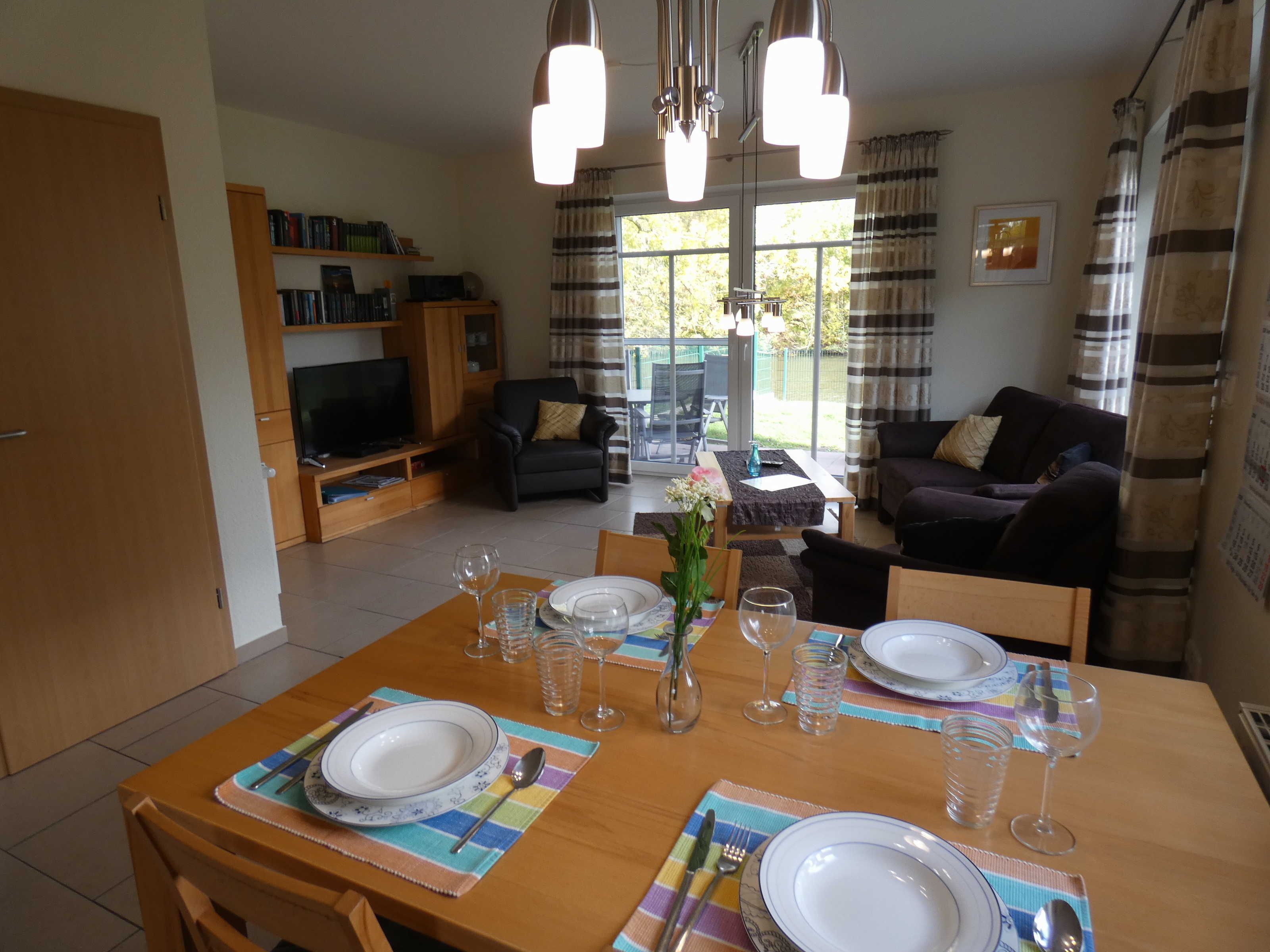 • Wohn- Esszimmer (Sitzecke, Esstisch, Kinderhochsitz, LED-HD-Sat-Fernseher, Stereo-System Radio, CD, iPhone-Dock)