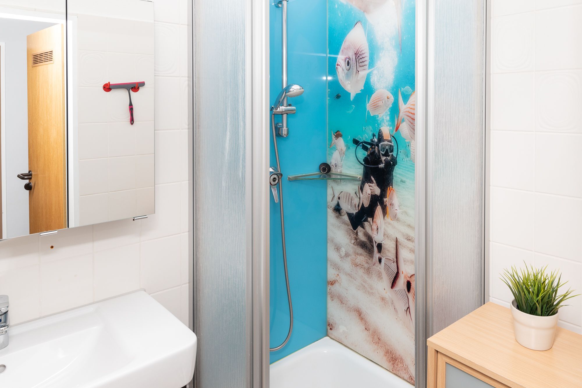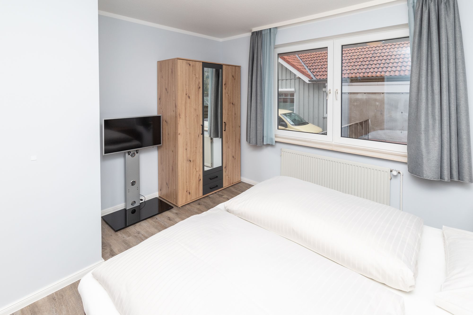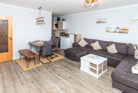Bestehend aus einem Wohnraum mit gemütlicher Couchgarnitur, Satelliten-HD-TV, Blue Ray Player, Radio, W-Lan, separaten Essplatz mit 4 Plätzen und einem gut eingerichteten Küchenbereich mit Spülmaschine, Backofen, Kaffeemaschine, Toaster. 2 Schlafzimmer mit Doppelbetten und einem Badezimmer/WC mit Dusche und Fön ausgestattet. Einen reservierten PKW Stellplatz finden Sie in der Tiefgarage (Einfahrtshöhe 190cm, Breite 225cm) oder kostenfrei in den Parkbuchten an der Straße.