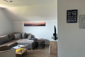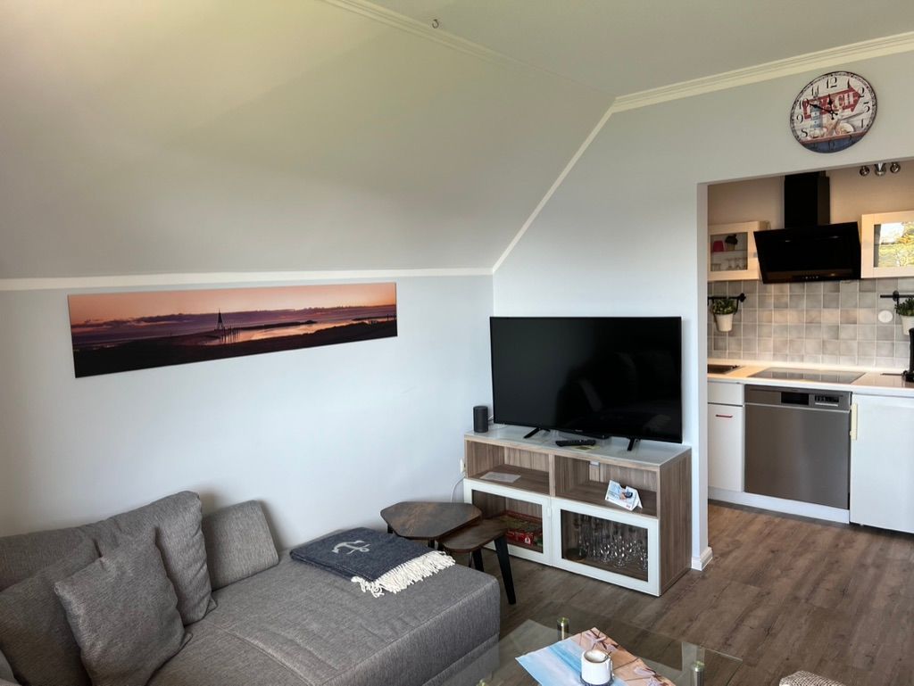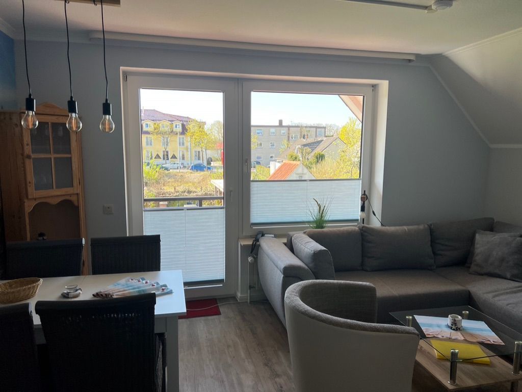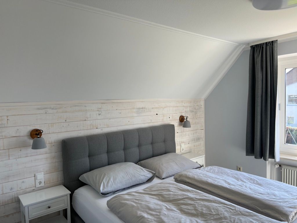 Sie wohnen in einer schönen, hellen, und gepflegten, 3-Zimmer Ferienwohnung im 1. Obergeschoss und im Dachgeschoss - über 2 Etagen mit Süd Loggia. Bestehend aus einem Wohnraum mit gemütlicher Couchgarnitur, Satelliten-HD-TV, Blue Ray Player, Radio, WLAN, separaten Essplatz mit 4 Plätzen und einem gut eingerichteten Küchenbereich mit Spülmaschine, Backofen, Kaffeemaschine, Toaster, 1 Schlafzimmer mit Doppelbett in der 1. Etage und weiteren Schlafzimmer im Dachgeschoss, sowie einem zusätzlichen Kinderzimmer mit einem Einzelbett / Kojenbett im 3. Schlafbereich, sowie dem Badezimmer/WC mit Dusche und Fön. Die optimale Nutzung der Wohnung ist für eine Familie bis zu 4 Personen vorgesehen.