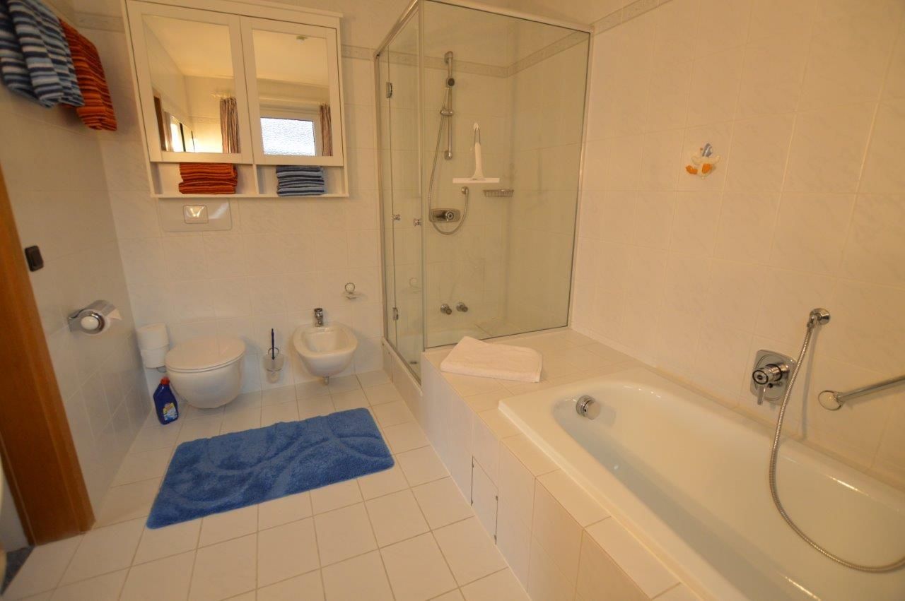 Genießen Sie 1-2 reservierte PKW-Stellplätze am Haus. Die optimale Belegung empfehlen wir für maximal 5 Personen. Die Bäder sind von den Schlafzimmern aus erreichbar, das Gäste-WC von der Diele.