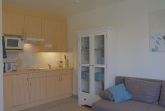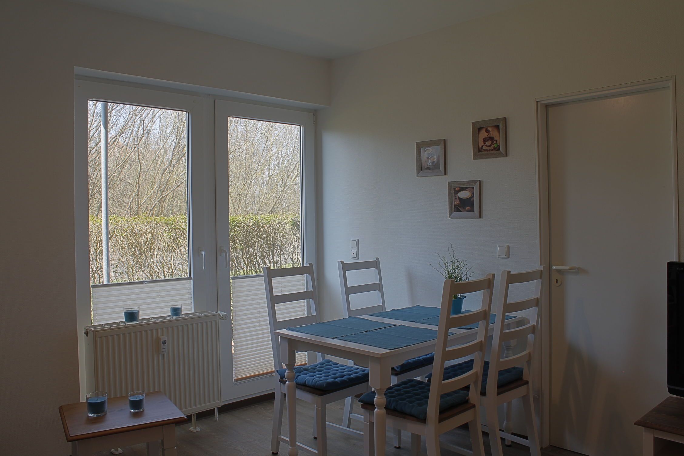 Komfortabel ausgestattete Ferienwohnung im Erdgeschoss mit 1 Schlafraum mit Doppelbett (1,60 x 2,00 m), 2. Schlafzimmer, 1 Einzelbett (0,90 x 2,00 m) mit Ausziehbett und 1 Babyreisebett. Küchenzeile und Wohnraum mit Ausgang zur gemütlichen Terrasse. Die Wohnung ist mit Vinylbelag ausgelegt und daher auch für Allergiker geeignet