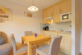 2018 renovierte, komfortabel ausgestattete Ferienwohnung im 1. Obergeschoss mit 2 Schlafräumen mit jeweils 1 Doppelbett (1,60 x 2,00 m), Küchenzeile und Wohnraum mit Ausgang zum geräumigen Balkon. Wohn- und Schlafzimmer mit Vinylbelag