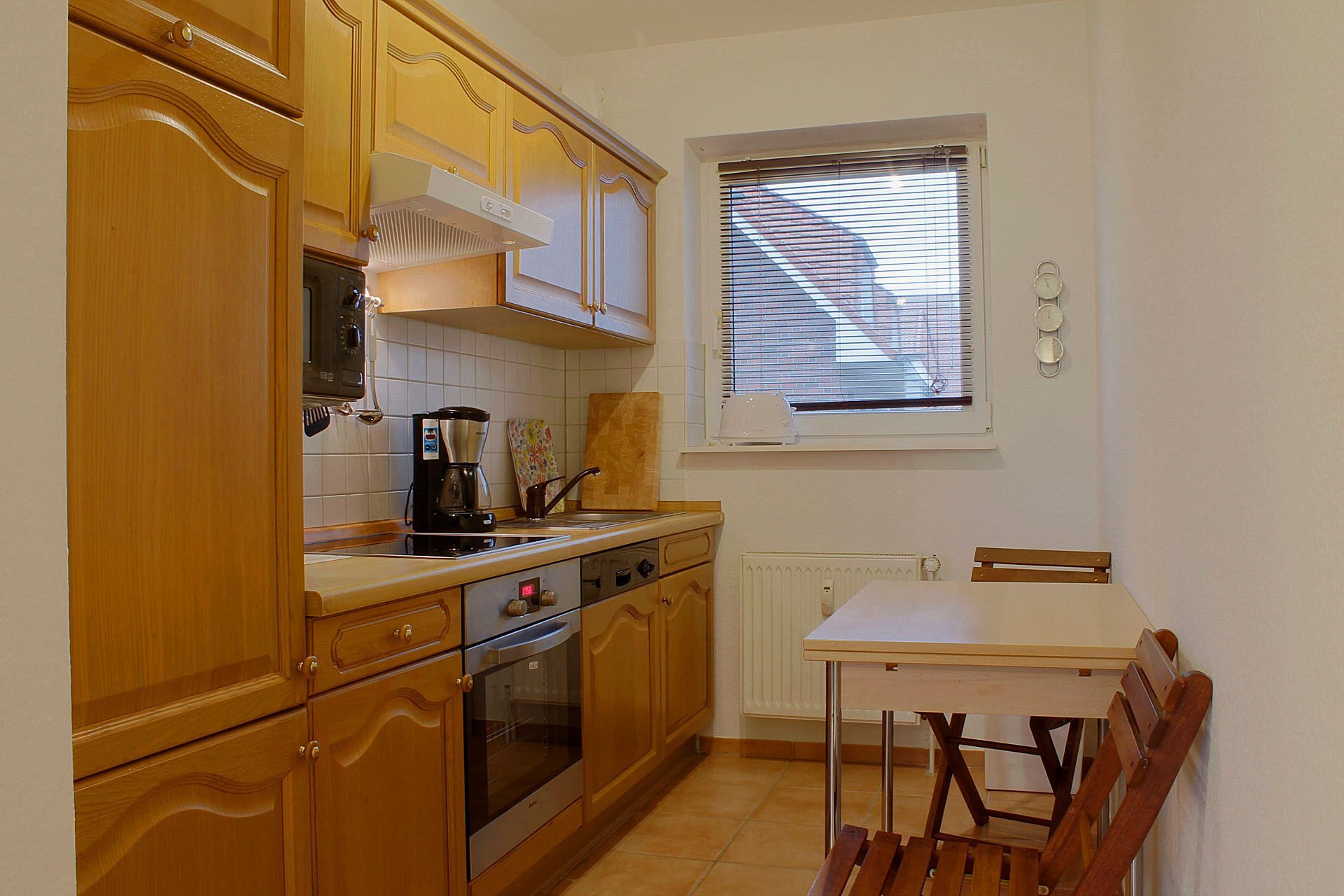 Komplett ausgestattete Küchenzeile mit Induktionsherd, Backofen, Kühlschrank, Kaffeemaschine, Geschirrspüler, Microwelle und Toaster etc.