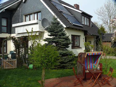 Diese Lichtdurchflutete Maisonettewohnung bietet viel Luxus zum Wohlfühlen auf 2 Etagen. 2 Schlafzimmer, eine gut ausgestattete Küche, modernes Duschbad mit bodentiefer großer Dusche, Balkon und Gartennutzung, sowie Abstellmöglichkeit für Fahrräder bieten wir Ihnen hier an. Im Garten steht für unsere Gäste ein Strandkorb bereit.