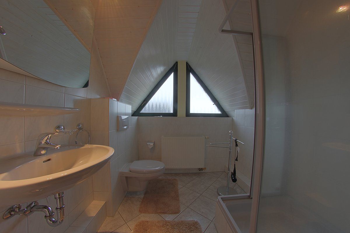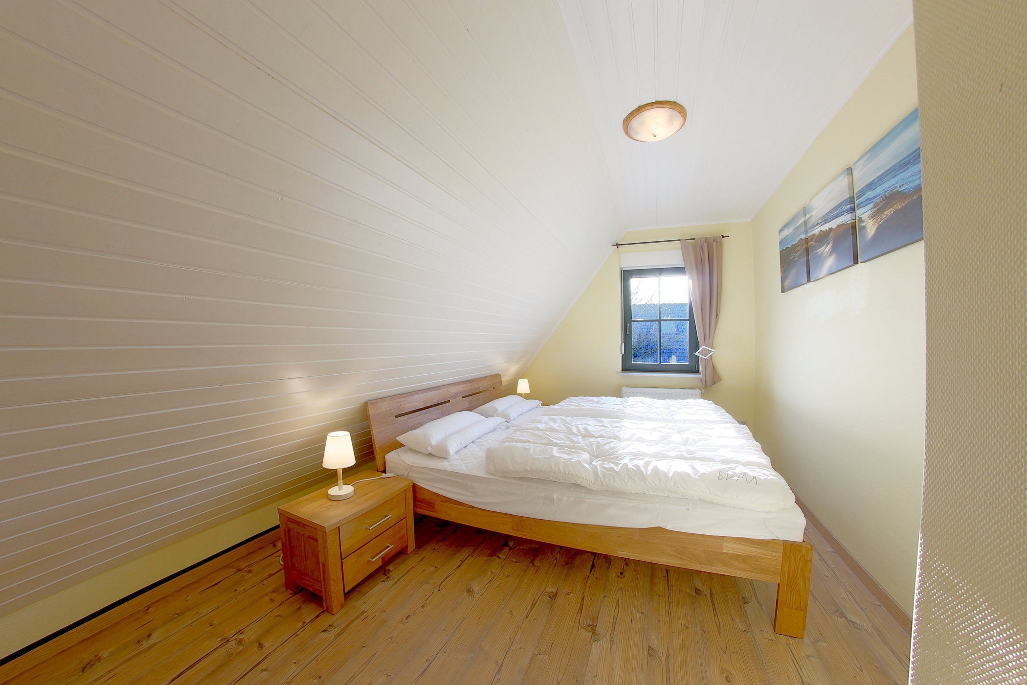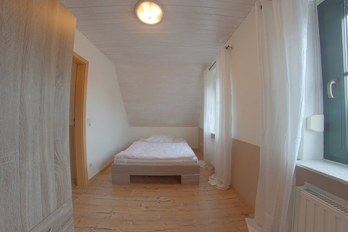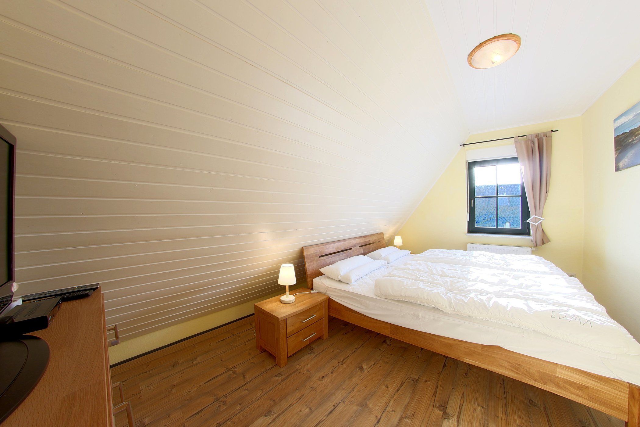Im Obergeschoss befinden sich die 3 abgeschlossenen Schlafzimmer und das Vollbad. Ein Schlafzimmer mit Doppelbett, ein Schlafzimmer mit 2 Einzelbetten und großem Kleiderschrank Kleiderschrank. Zur Ausstattung des Kinderzimmers gehört ein französisches Bett und ein Einzelbett, sowie ein Kleiderschrank.