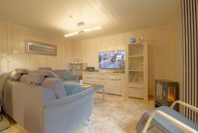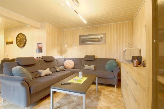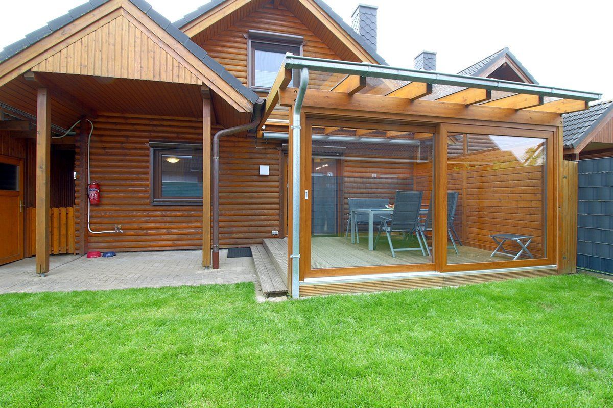 Schickes Ferienhaus mit 3 Schlafzimmern, 2 Bäder, Sauna, Kaminofen und gemütlicher Sonnenterrasse. Der Garten ist eingezäunt.