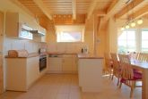 Im komplett gefliesten Erdgeschoss gibt es einen offenen Wohnbereich mit Kaminofen und großem Flat-TV (Smart-TV), Essplatz und Küche mit komplett ausgestatteter moderner Einbauküche, in der es an nichts fehlt. Von hier aus geht es auf die sonnige Terrasse mit Abstellraum und Gartenmöbeln.