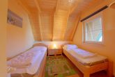 Im Obergeschoss befinden sich zwei weitere Schlafzimmer und ein WC mit Waschbecken. Ein Schlafzimmer mit Doppelbett, Babybett für ein Kleinkind und ein weiteres Schlafzimmer mit 2 Einzelbetten.