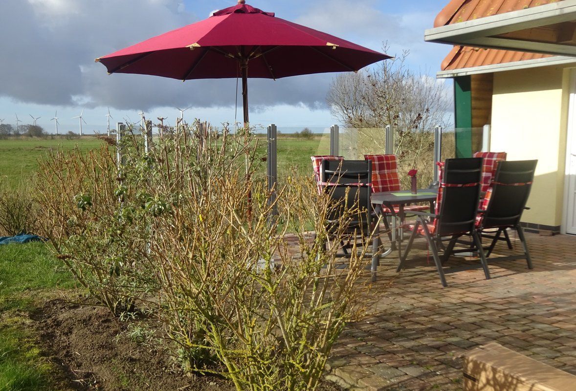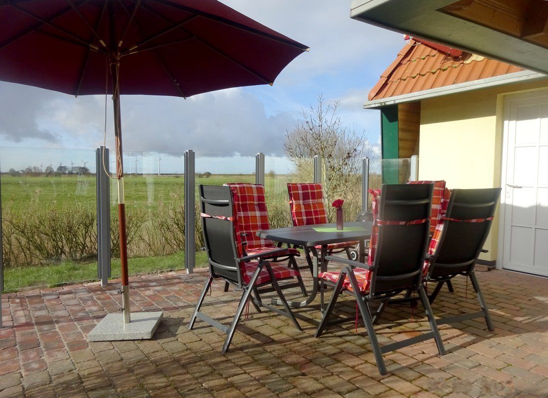 Die geräumige Terrasse bietet Platz zum gemütlichen Beisammensein.