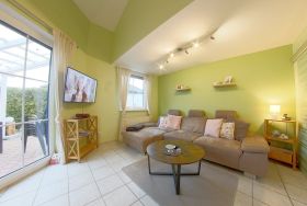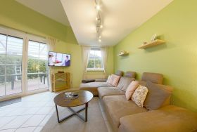 Flachbild-TV, Sitzecke und direkter Ausgang auf die uneinsehbare Terrasse mit Gartenmöbeln und Grillkamin gehören dazu. Außenrollläden tlws. elektrisch und Fliegengitter vor den Fenstern sorgen für mückenfreie Zonen.