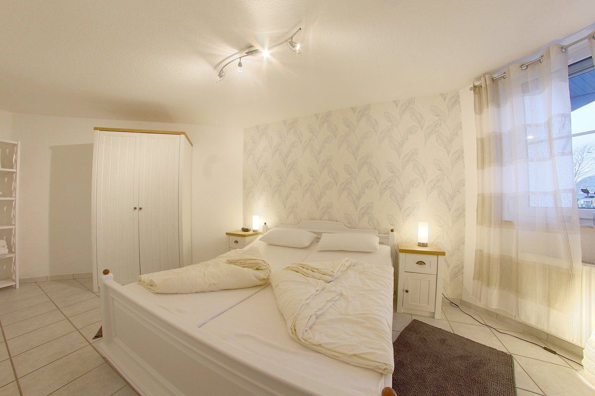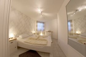 Des weiteren befindet sich ein Schlafzimmer mit Doppelbett und ein helles Duschbad mit WC im Untergeschoss. Im Obergeschoss ist ein Schlafraum für Kinder mit 2 Einzelbetten und TV vorhanden und eine Galerie als Spielbereich für die Kinder.