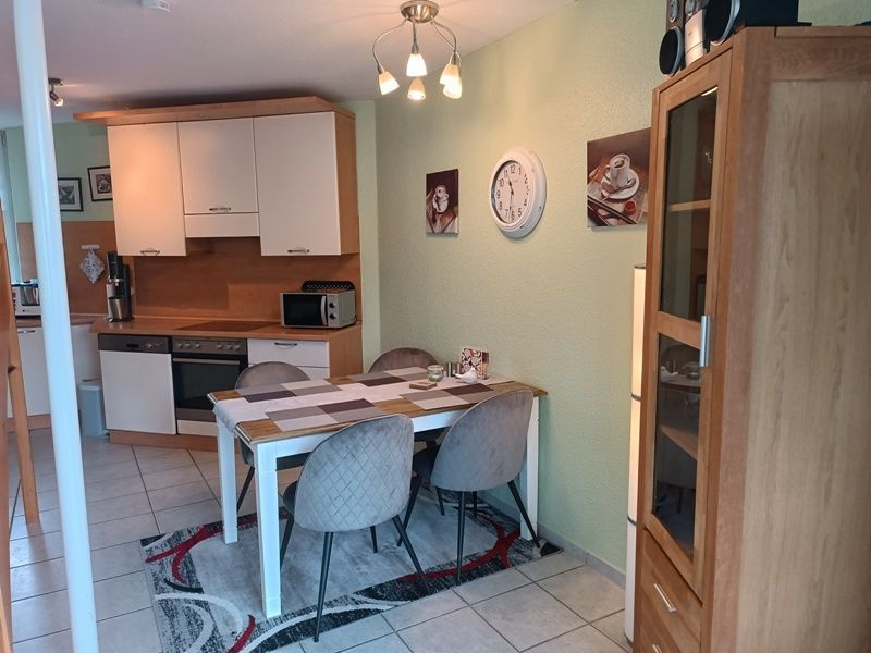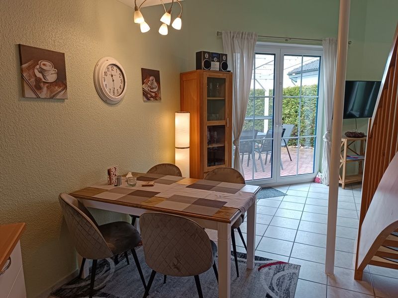 Schicker Bungalow mit offenem Wohn-, Ess- und Küchenbereich mit Einbauküche mit Geschirrspüler, E-Herd mit Backofen, großer Kühlschrank mit separatem Gefrierfach, Kaffeemaschine, Toaster, Mikrowelle, Waschmaschine und komplettem Geschirr. Sogar ein Kochautomat Monsieur Cuisine ist vorhanden.