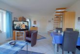 Gemütliche Nichtraucher- Ferienwohnung mit Wohn- und Essbereich mit Ausgang zum Balkon, separate Küche und einem Schlafraum im Spitzboden mit Doppelbett (1,60 x 2,00 m) und einem Einzelbett (0,90 x 2,00 m ). Der Wohnbereich ist komplett gefliest, Schlafbereich mit Teppichboden. Babyreisebett und Hochstuhl stehen in der Wohnung zur Verfügung.