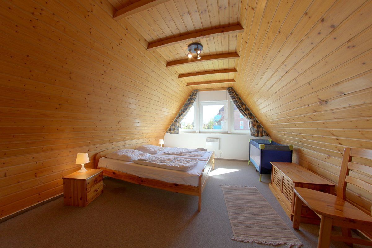 Ein Schlafzimmer mit Doppelbett und Babyreisebett, sowie ein Schlafzimmer mit zwei Einzelbetten und ein helles Duschbad mit Waschmaschine stehen Ihnen hier im Haus zur Verfügung. Die Schlafräume sind mit Teppichboden ausgestattet.