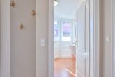 Zwei Badezimmer, einmal mit Wanne, Doppelwaschbecken und WC und ein Duschbad mit WC.