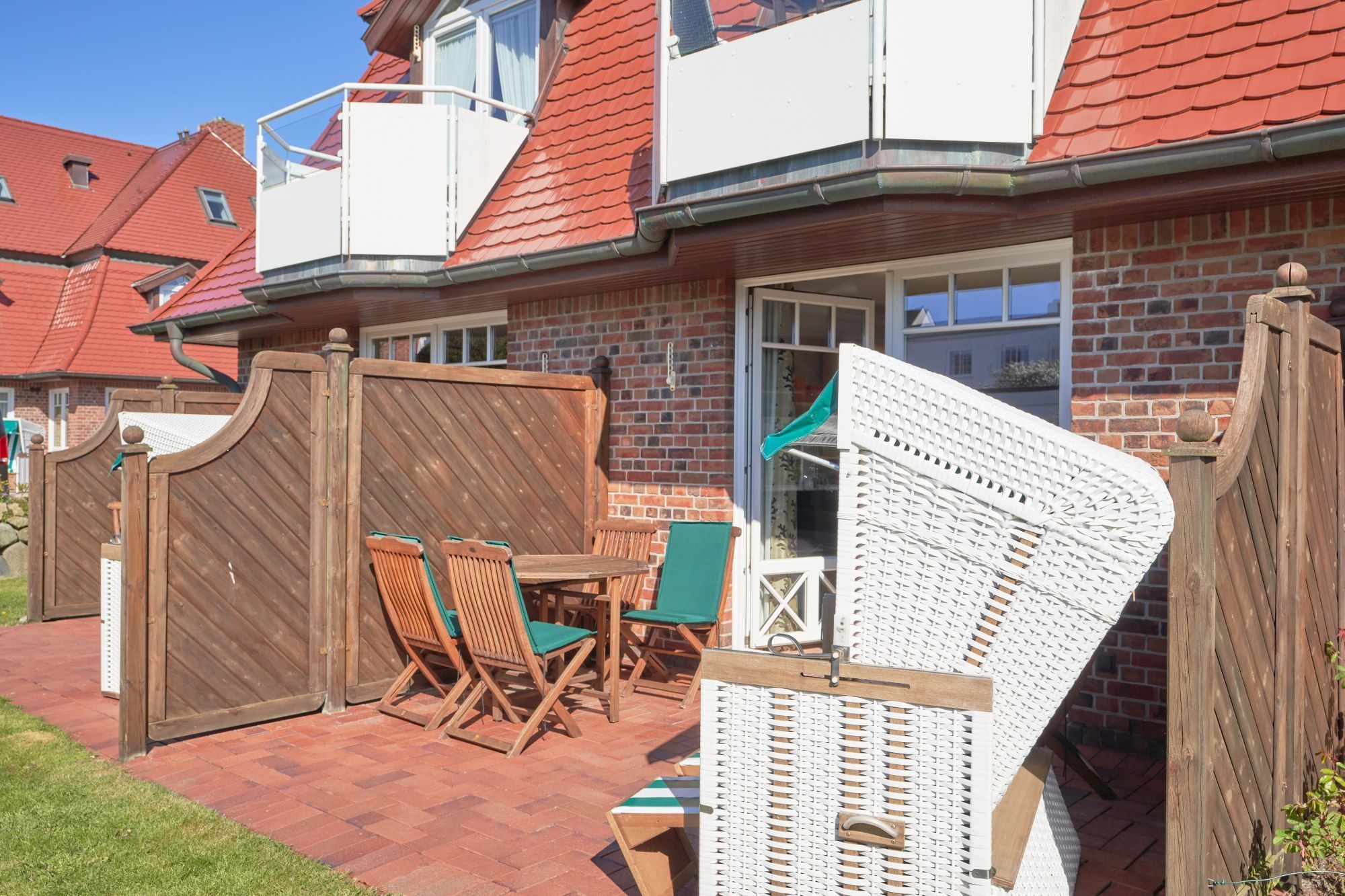 Auch eine Terrasse mit Strandkorb und Gartenmöbeln steht Ihnen zur Verfügung.