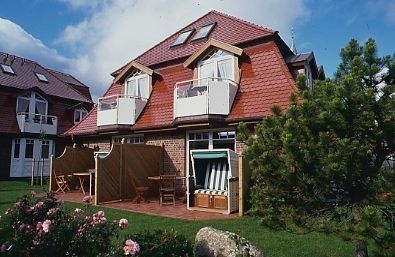 Auch eine Terrasse mit Strandkorb und Gartenmöbeln steht Ihnen zur Verfügung.
