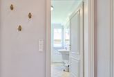 Zwei Badezimmer, einmal mit Wanne, Doppelwaschbecken und WC und ein Duschbad mit WC.