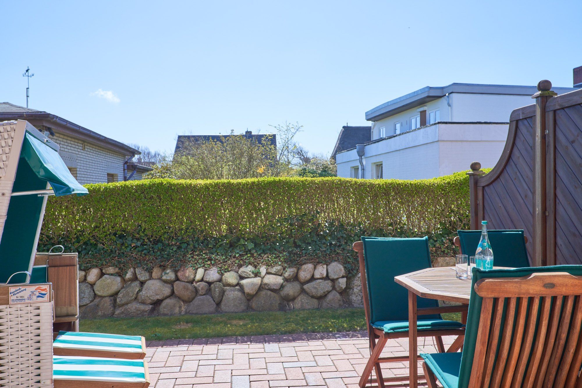 Auch eine Terrasse mit Strandkorb und Gartenmöbeln steht Ihnen zur Verfügung.