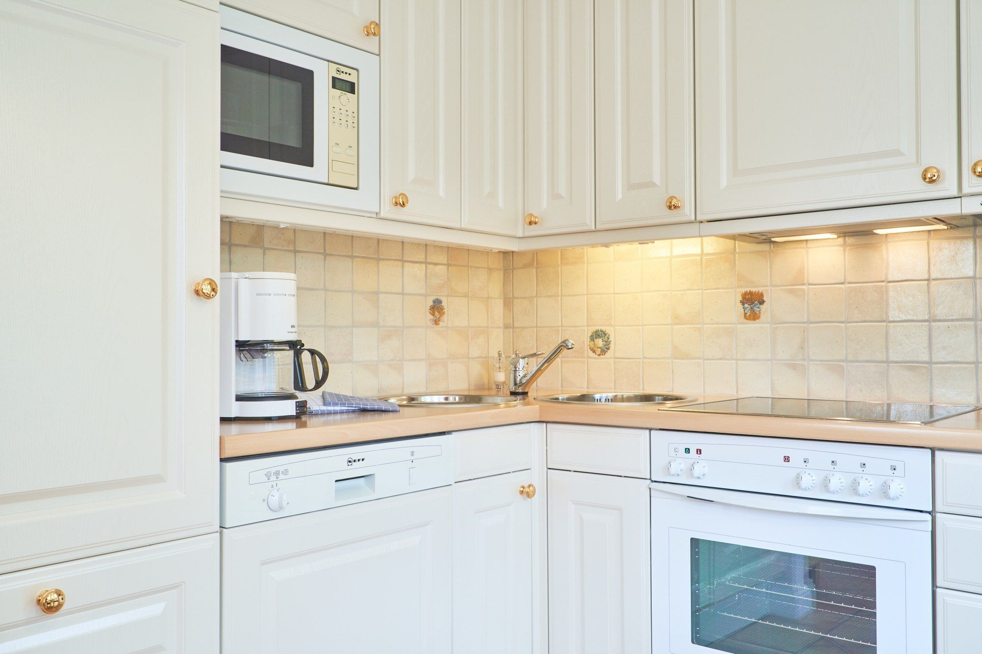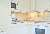 Angekommen in der modernen Wohnung, erwartet Sie das helle, lichtdurchflutete Wohnzimmer mit der komplett ausgestatteten Küche.