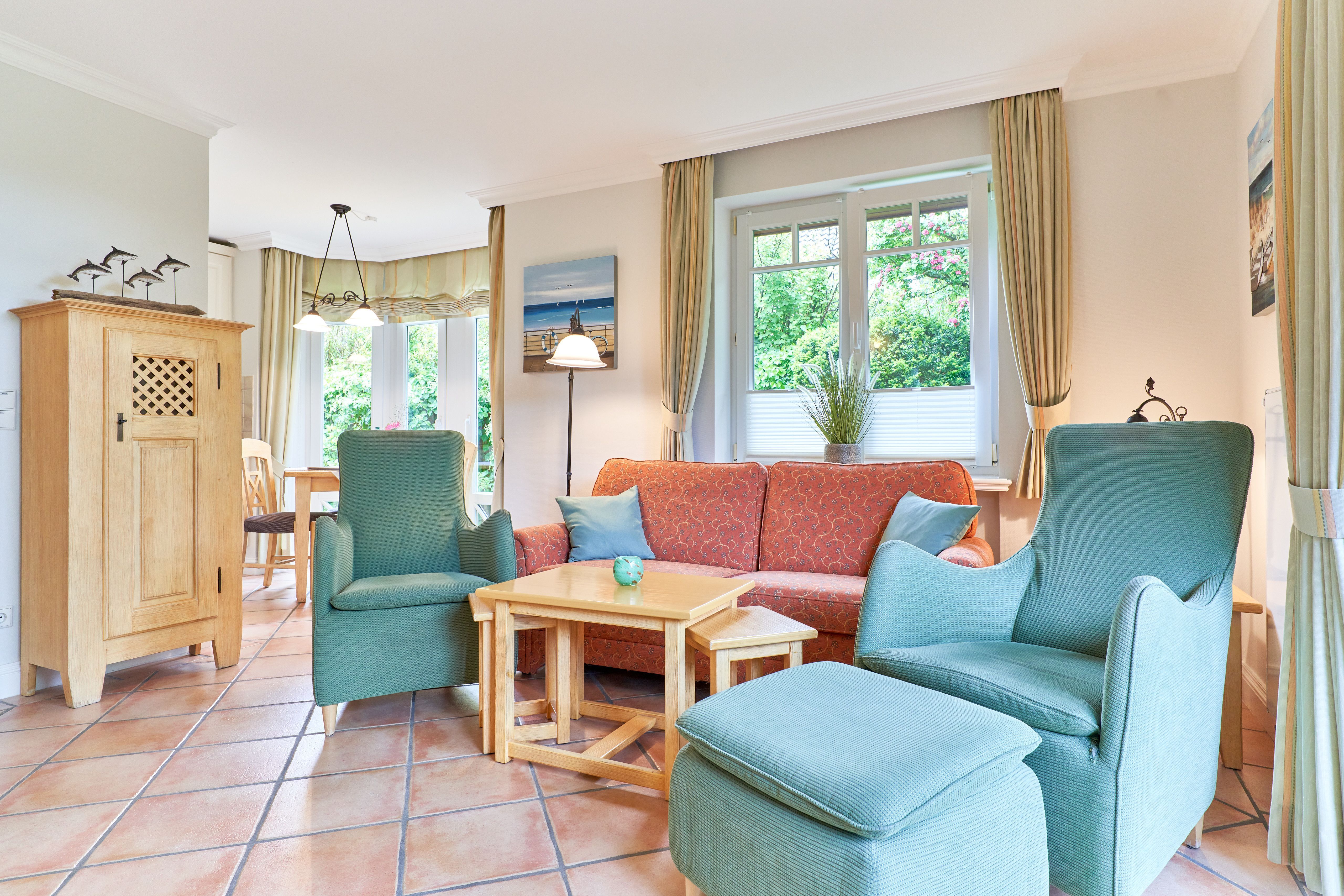 Auch eine Terrasse mit Strandkorb und Gartenmöbeln steht Ihnen zur Verfügung.