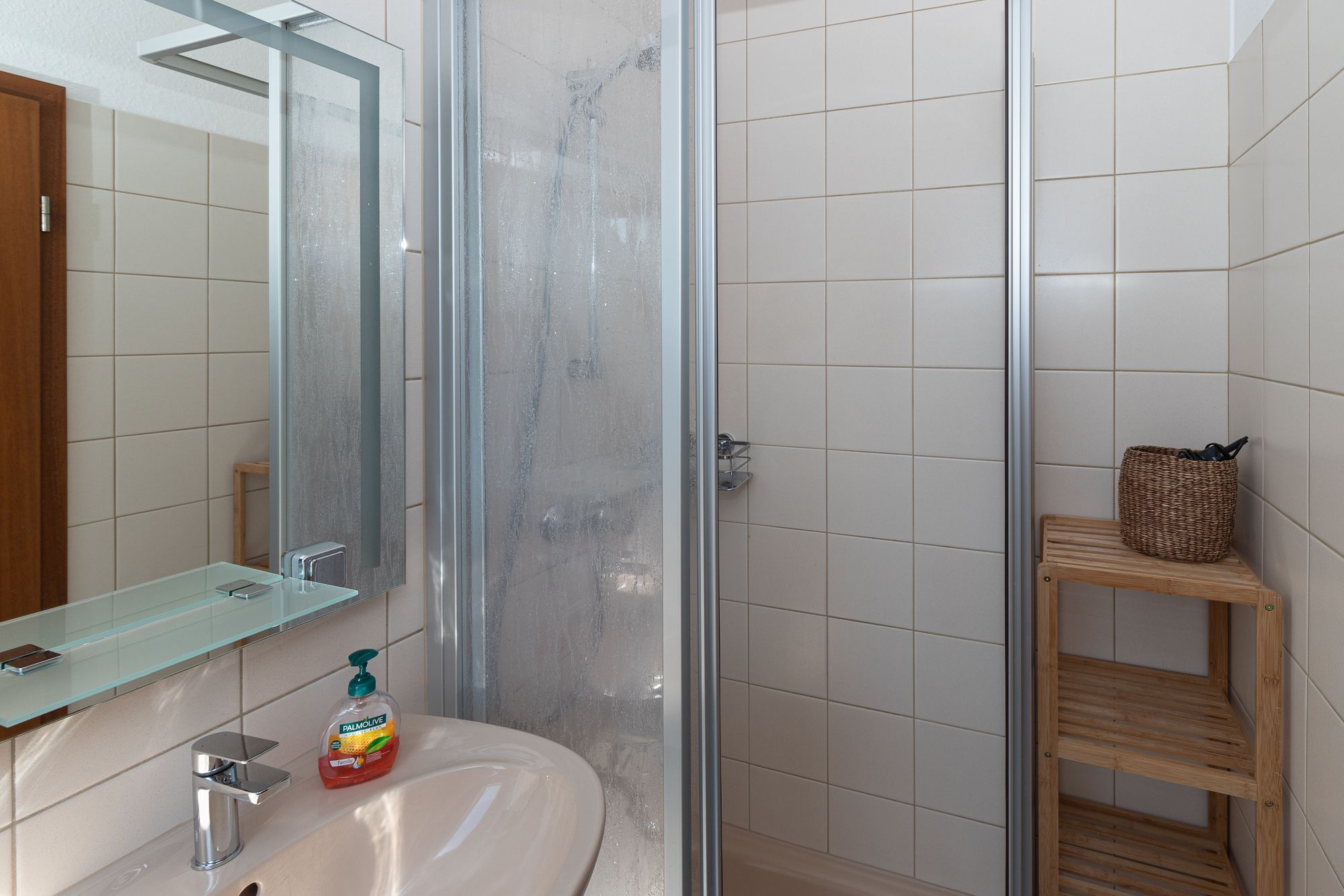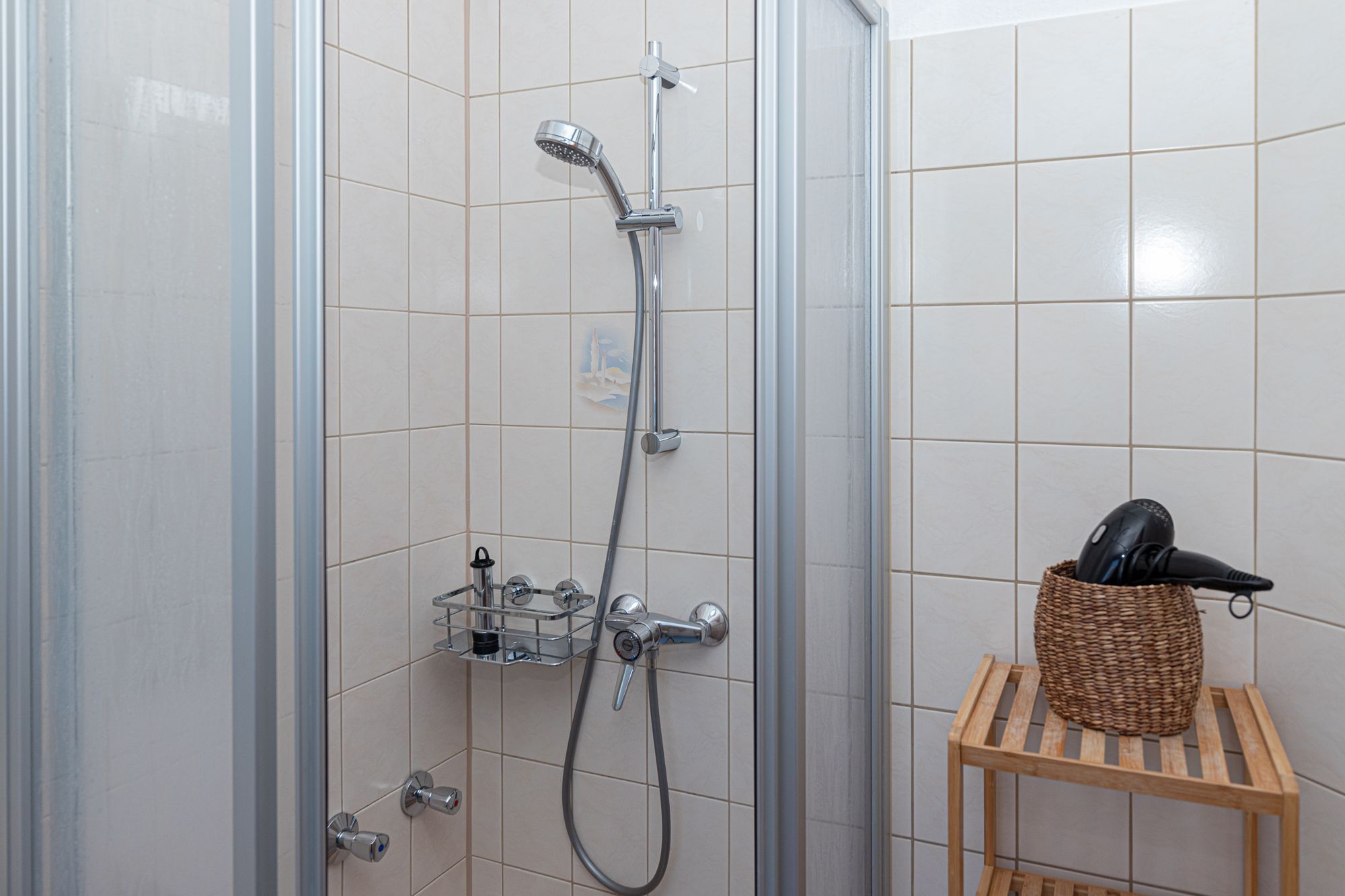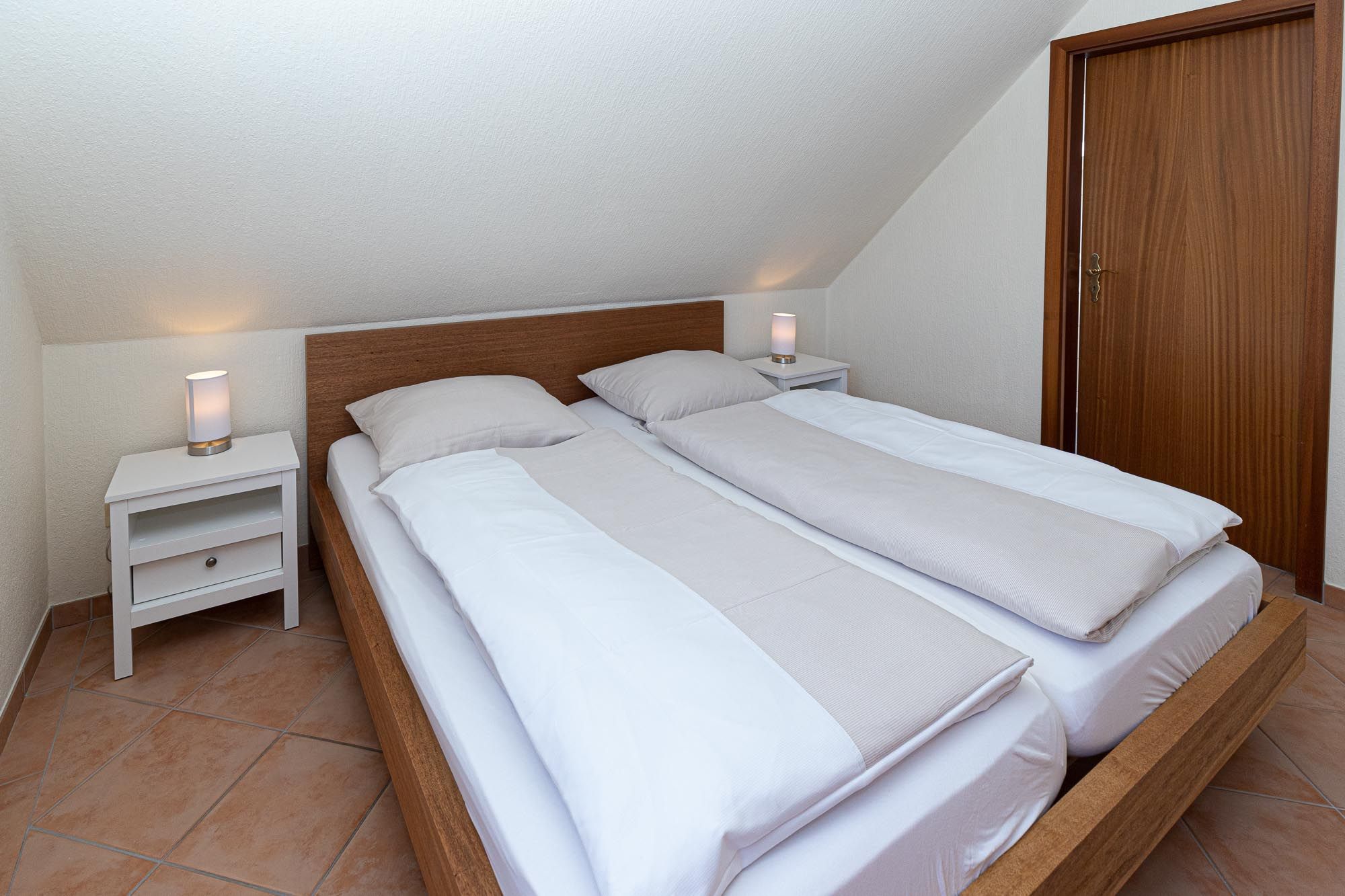 Das Ferienhaus bietet 4 Schlafbereiche mit insgesamt 7 komfortablen Schlafplätzen. Zusätzlich gibt es ein Ausziehbett im Erdgeschoss, das in ein Doppelbett umgewandelt werden kann, sowie ein feststehendes Kinderbett im ersten Obergeschoss. Jedes Schlafzimmer ist mit einem eigenen kleinen Duschbad mit WC und Tageslicht ausgestattet.