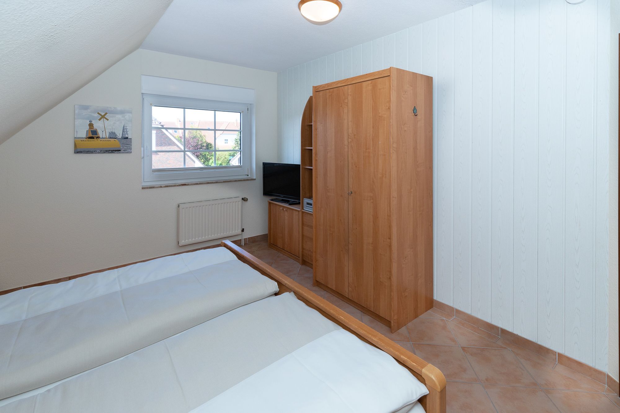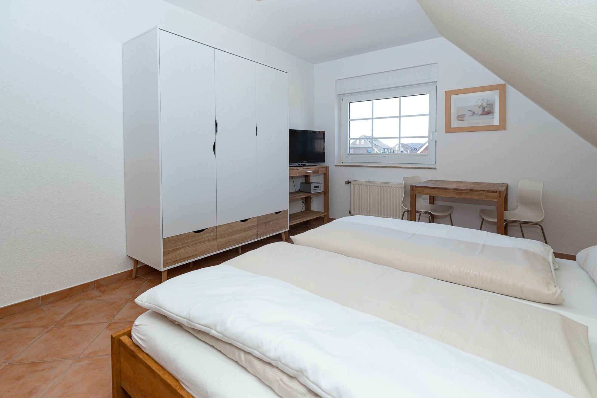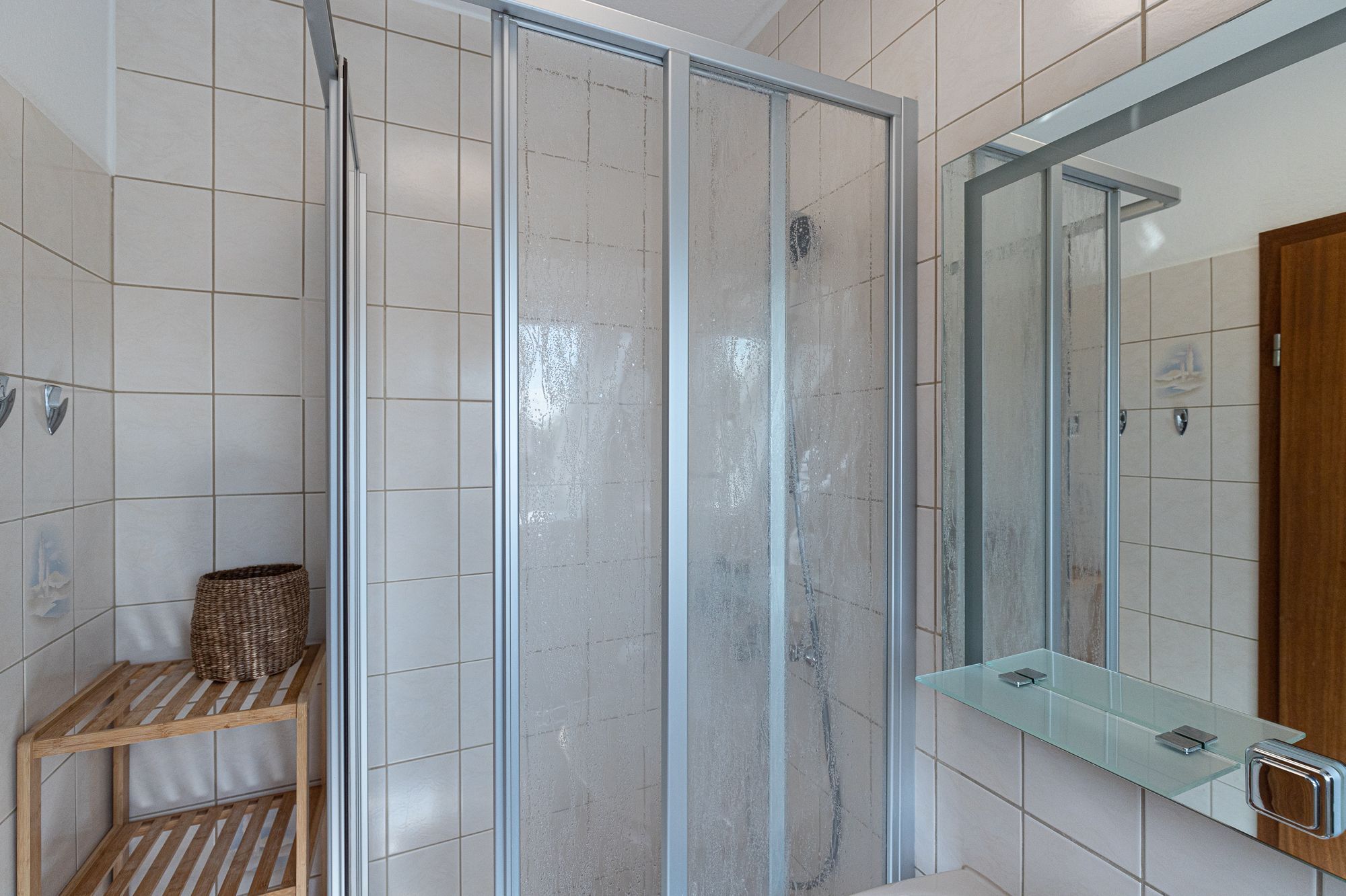 Das Ferienhaus bietet 4 Schlafbereiche mit insgesamt 7 komfortablen Schlafplätzen. Zusätzlich gibt es ein Ausziehbett im Erdgeschoss, das in ein Doppelbett umgewandelt werden kann, sowie ein feststehendes Kinderbett im ersten Obergeschoss. Jedes Schlafzimmer ist mit einem eigenen kleinen Duschbad mit WC und Tageslicht ausgestattet.