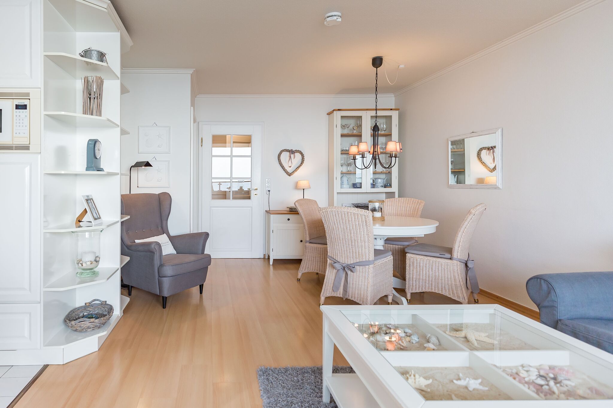 Das Haus Uthlande befindet sich in einer gehobenen Ferienanlage am Rande von Wyk. Umgeben von Wäldern, dem gegenüberliegenden Golfplatz und dem nahen Freizeitflughafen bietet es mit dem Sandstrand und der Nähe zu Greveling (den einmaligen Reetdachhäusern auf eigenen kleinen Warften) ein schönes Freizeitangebot. Die Wohnung befindet sich in der dritten Etage und wurde mit viel Liebe zum Detail eingerichtet. Genießen Sie das geschmackvolle Ambiente oder lassen Sie sich auf dem überdachten Balkon von der Sonne kitzeln. Wir wünschen Ihnen schon jetzt viel Spaß und einen angenehmen Aufenthalt.