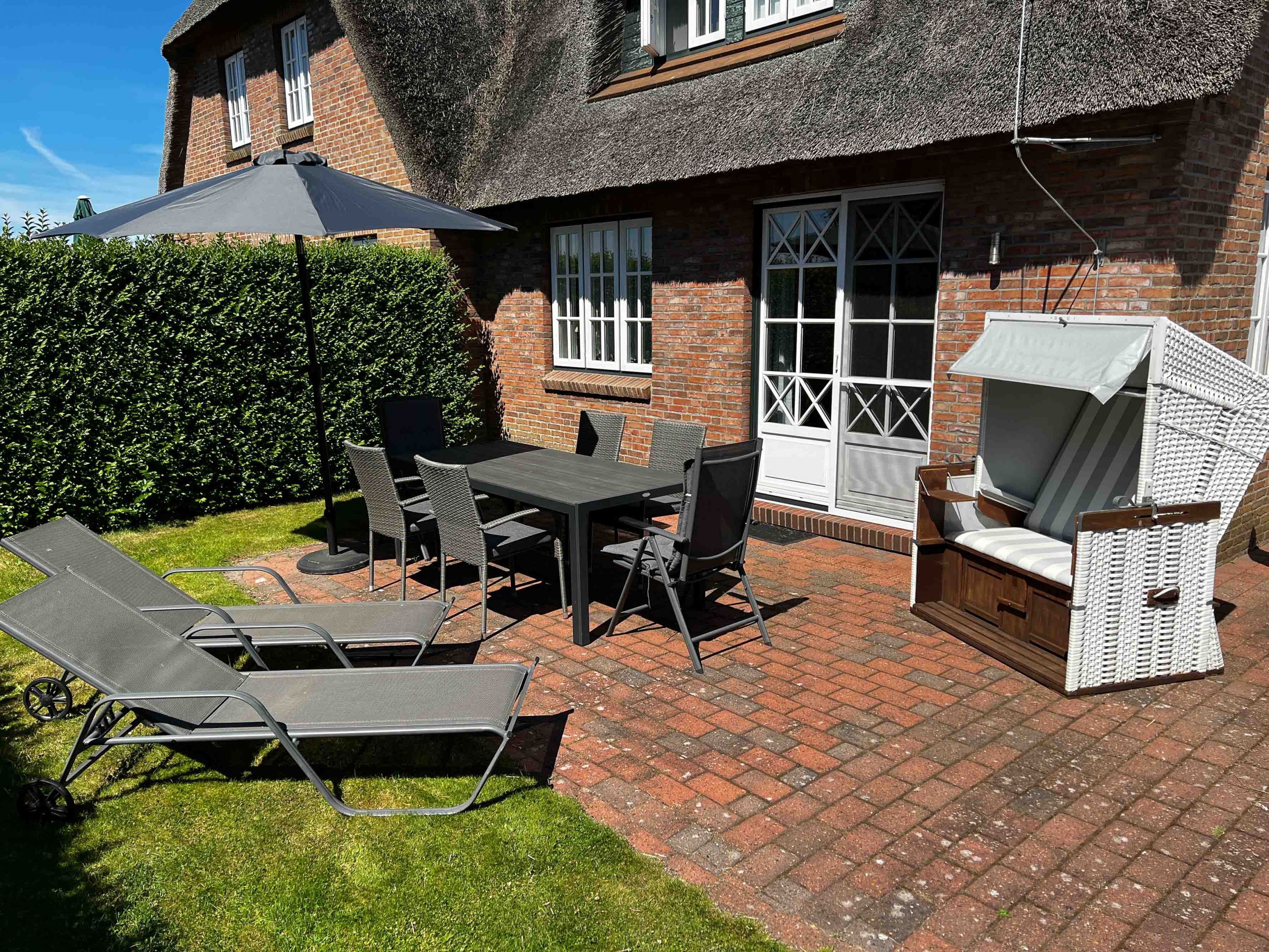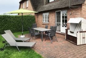 Wir begrüßen Sie im Haus Grünland. Die Doppelhaushälfte unter Reet lässt keine Wünsche offen. Der großzügige Garten und die traumhafte Randlage mit Blick in die Marsch, bieten Ihnen ein Umfeld wie Sie es auch auf der Insel Föhr nicht oft wiederfinden. Hier werden Sie gelassen und entspannt Ihren Urlaub verbringen, weit weg vom Trubel der Großstadt. Im kleinen Örtchen Alkersum befindet sich das weitbekannte Museum Kunst der Westküste mit wechselnden Ausstellungen und ist immer einen Besuch wert. Ein Bäcker, ein Hofladen und auch ein Reiterhof runden den Ortsdurchgang ab. Wem das nicht reicht, der kommt im nahe gelegenen Friesenort Nieblum sicher auf seine Kosten oder startet gleich ins ca. 5 km entfernt gelegene Städtchen Wyk.