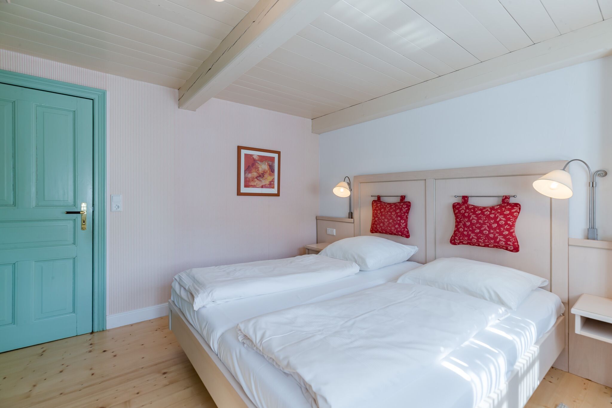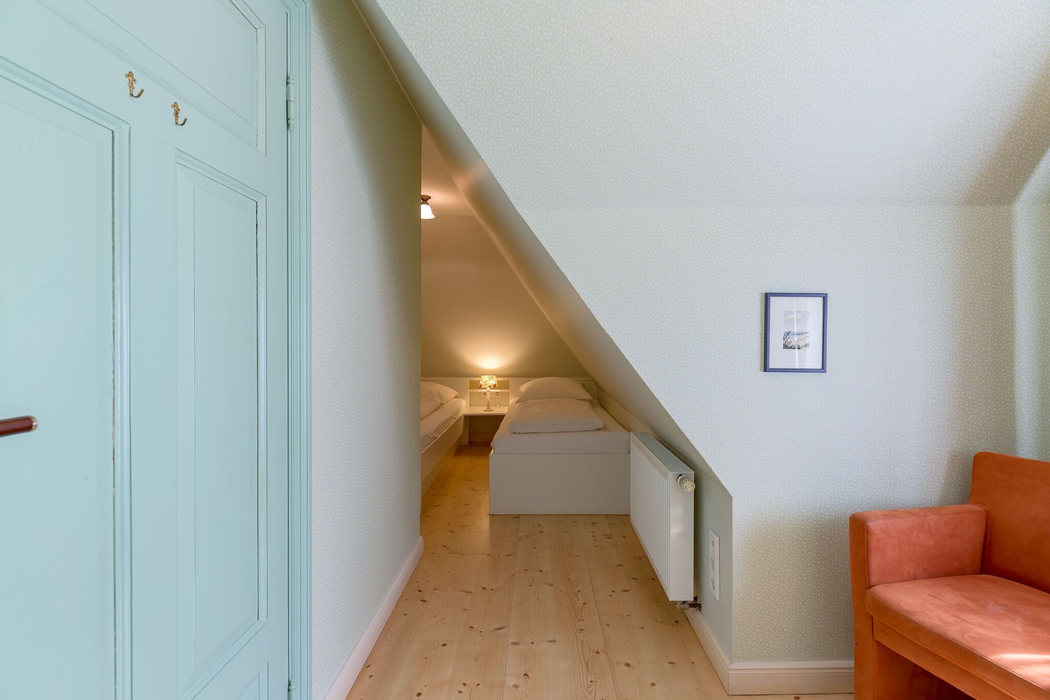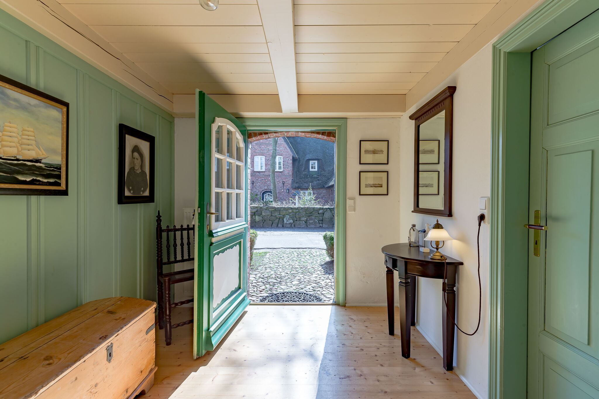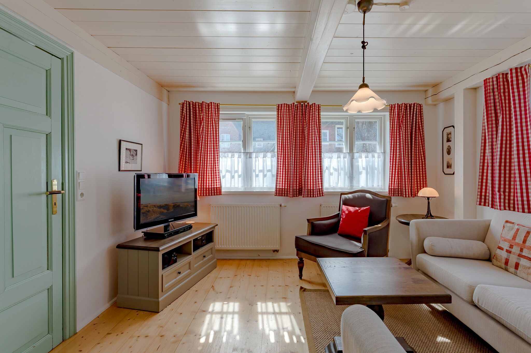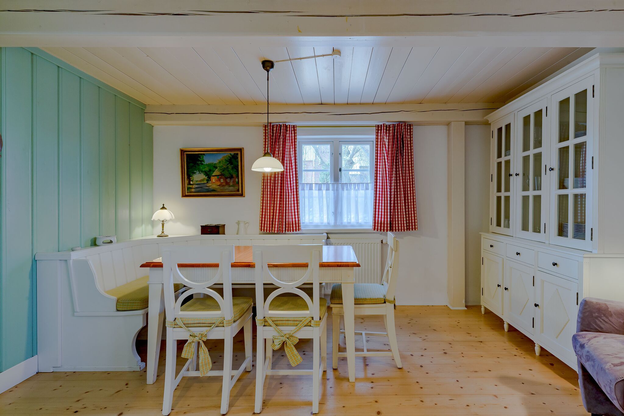 Das reetgedeckte Alte Kapitänshaus wurde 1743 errichtet. In der wechselvollen Geschichte des Hauses lebte auch Hay Volkerts, der viele Jahre zum Walfang auf See war und es zu einigem Ruhm gebracht hat. Jahre später kaufte es Jacob Jacobsen, den es nach erfolgreicher Goldgräberei in Australien wieder auf seine Heimatinsel Föhr zog. Das Haus wurde von Grund auf renoviert und dabei die ursprüngliche Raumaufteilung mit Dörnsk und Pesel wiederhergestellt. Bei der Restaurierung wurde viel Wert auf historische Materialien gelegt. Von dem 1000 Jahre alte Eichenholz, das ursprünglich aus der St. Johannis Kirche stammt und in diesem Haus als Baumaterial Verwendung fand, ist noch ein Rest im neuen Bad erhalten. Dazu liegt es im malerischen Dorf Nieblum mit Blick auf die Kirche. Neugierig?